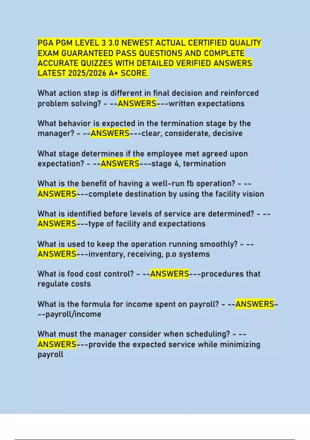 PGA PGM LEVEL 3 3.0 NEWEST ACTUAL CERTIFIED QUALITY EXAM GUARANTEED PASS QUESTIONS AND COMPLETE ACCURATE QUIZZES WITH DETAILED VERIFIED ANSWERS LATEST 2025/2026 A+ SCORE.