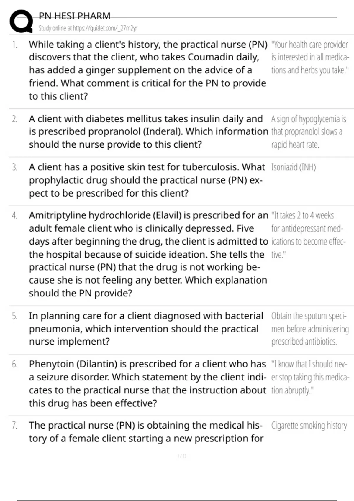 1. While taking a client's history, the practical nurse (PN) "Your health care provider