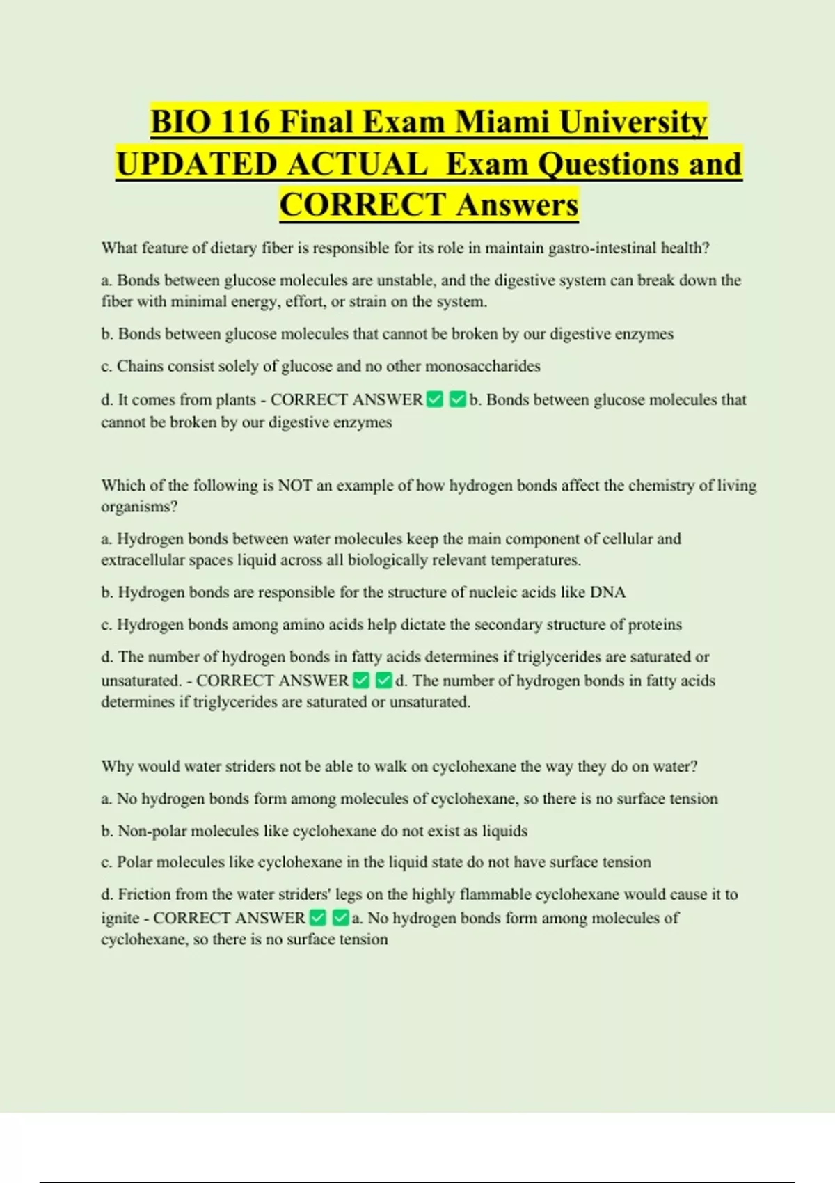 d. It comes from plants - CORRECT ANSWER b. Bonds between glucose molecules that