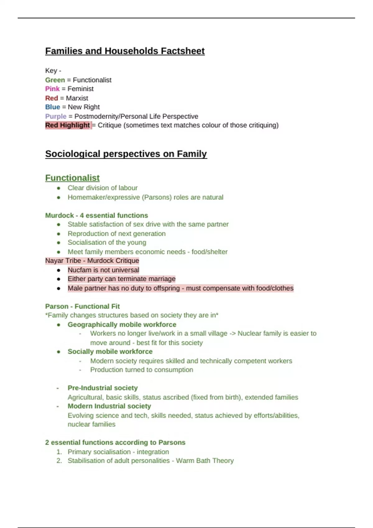 AQA Sociology - Families & Households - 11 Pages A4 Typed