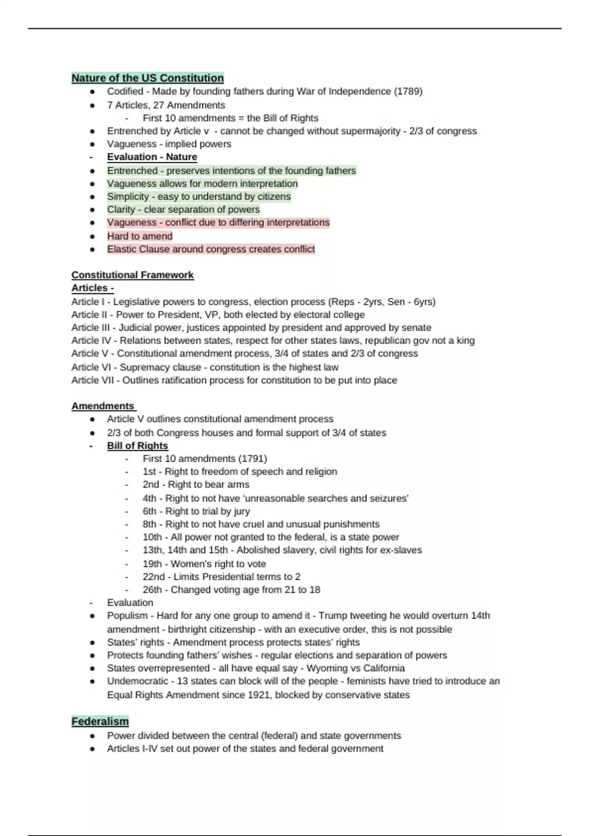 - First 10 amendments = the Bill of Rights