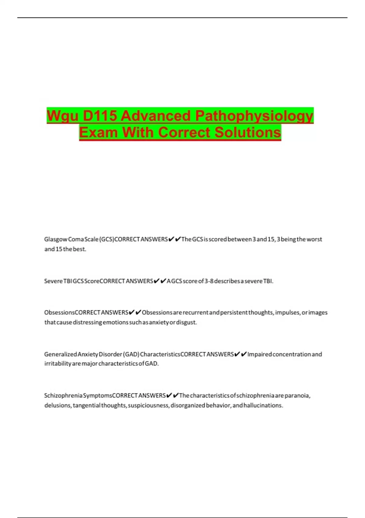 Wgu D115 Advanced Pathophysiology Exam With Correct Solutions.
