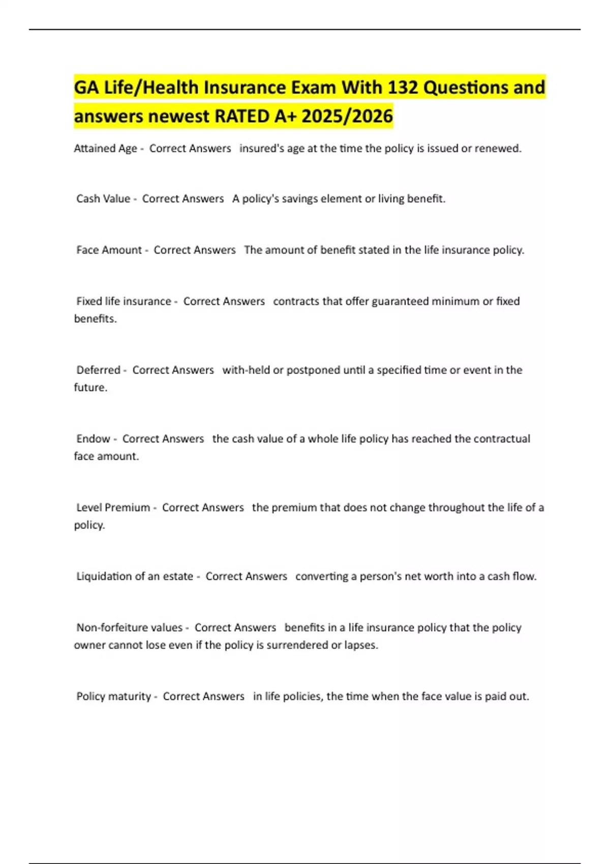 Cash Value - Correct Answers A policy's savings element or living benefit.