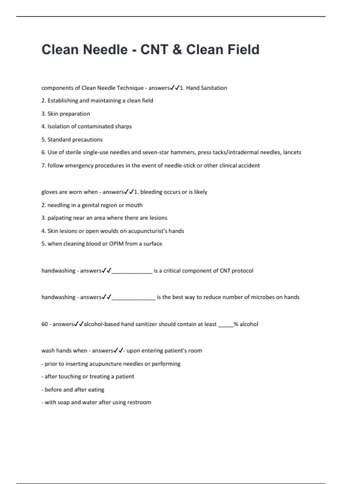 components of Clean Needle Technique - answers✔✔1. Hand Sanitation