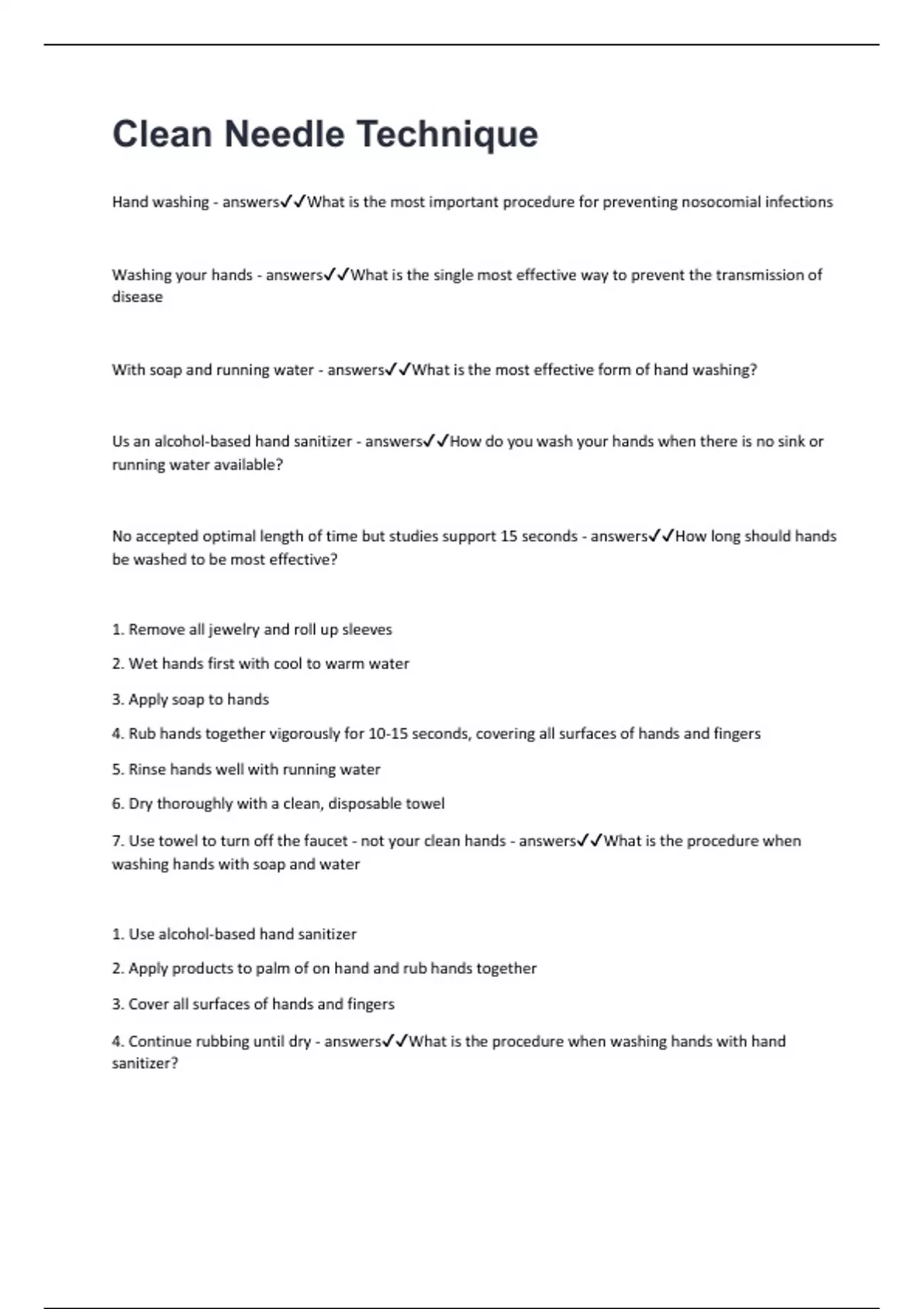 Hand washing - answers✔✔What is the most important procedure for preventing nosocomial infections