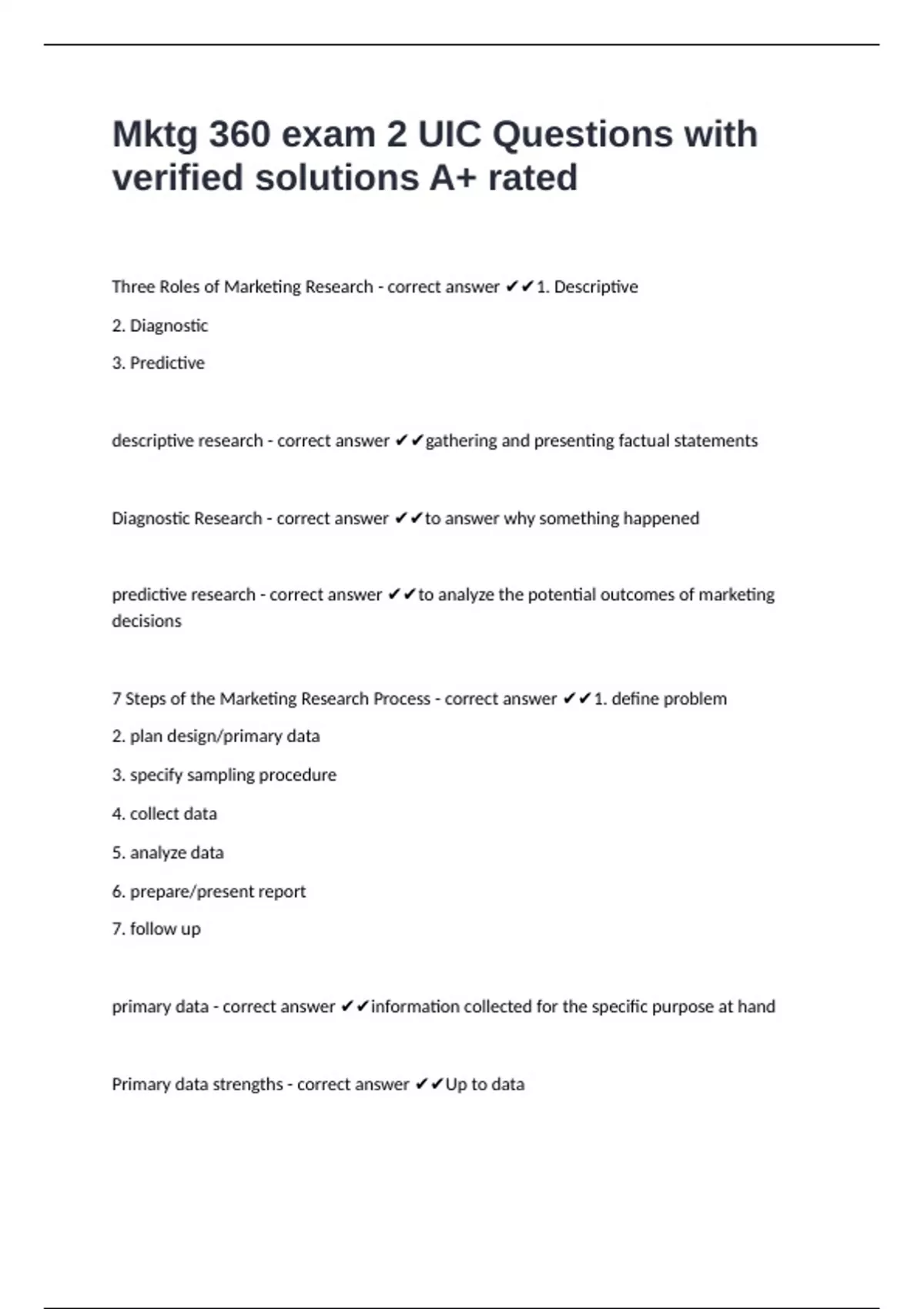 Mktg 360 exam 2 UIC Questions with verified solutions A+ rated