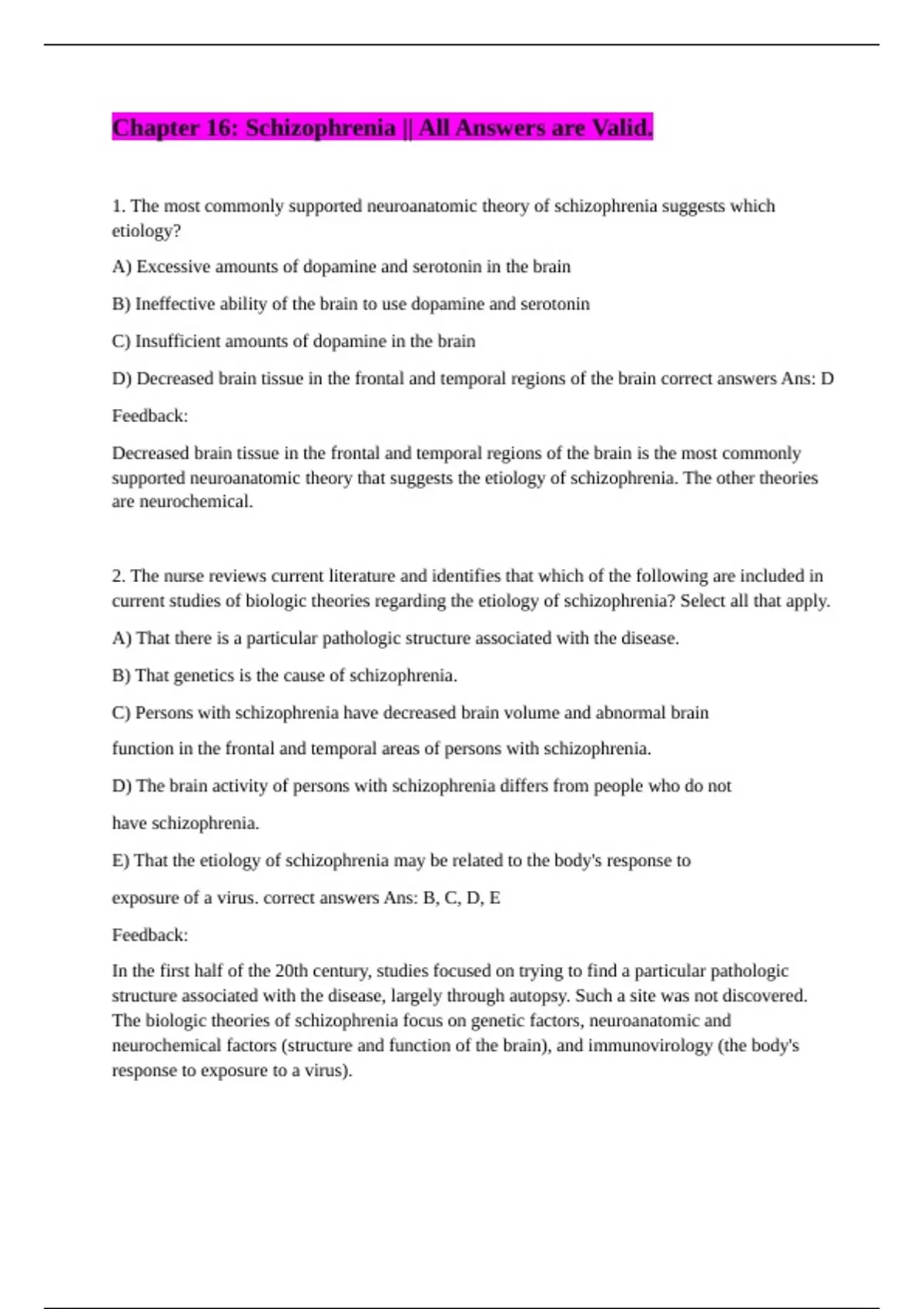 D) That schizophrenia is at least partially inherited. correct answers Ans: D Feedback: