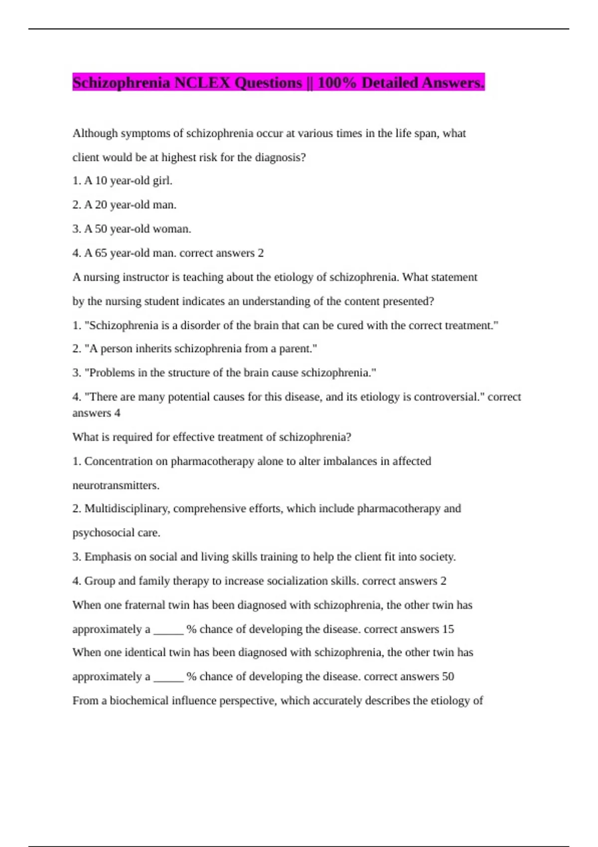 Schizophrenia NCLEX Questions || 100% Detailed Answers.
