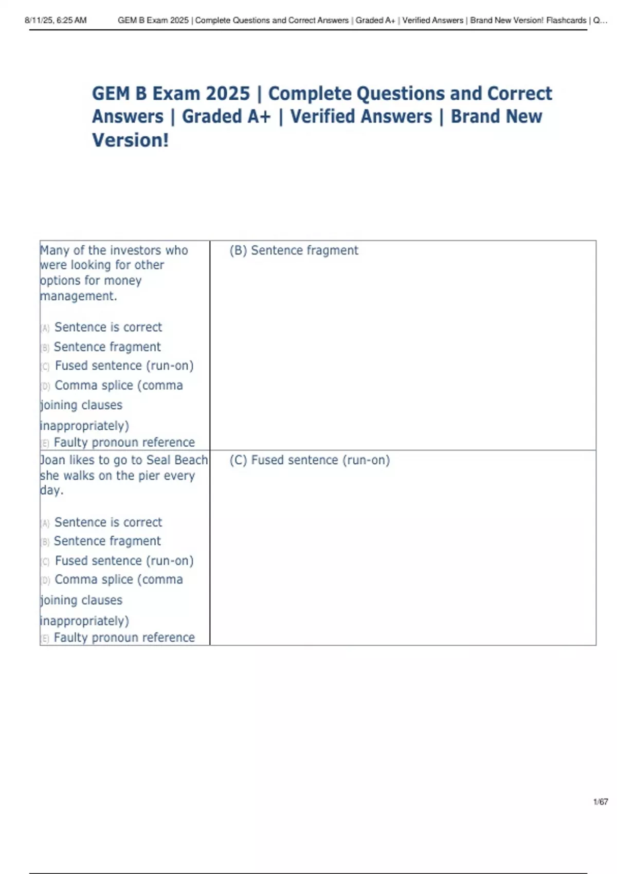 , 8/11/25, 6:25 AM GEM B Exam 2025 | Complete Questions and Correct Answers | Graded A+ | Verified Answers | Brand New Version! Flashcards | Q…