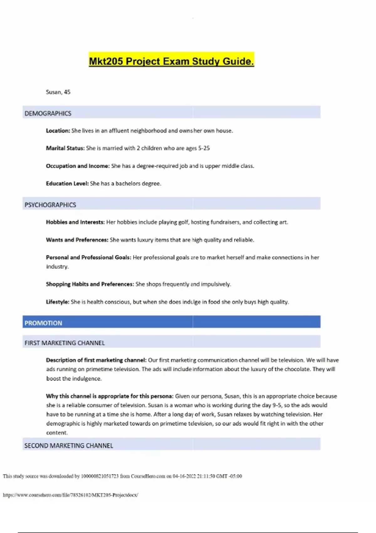 Mkt205 Project Exam Study Guide.Mkt205 Project Exam Study Guide.