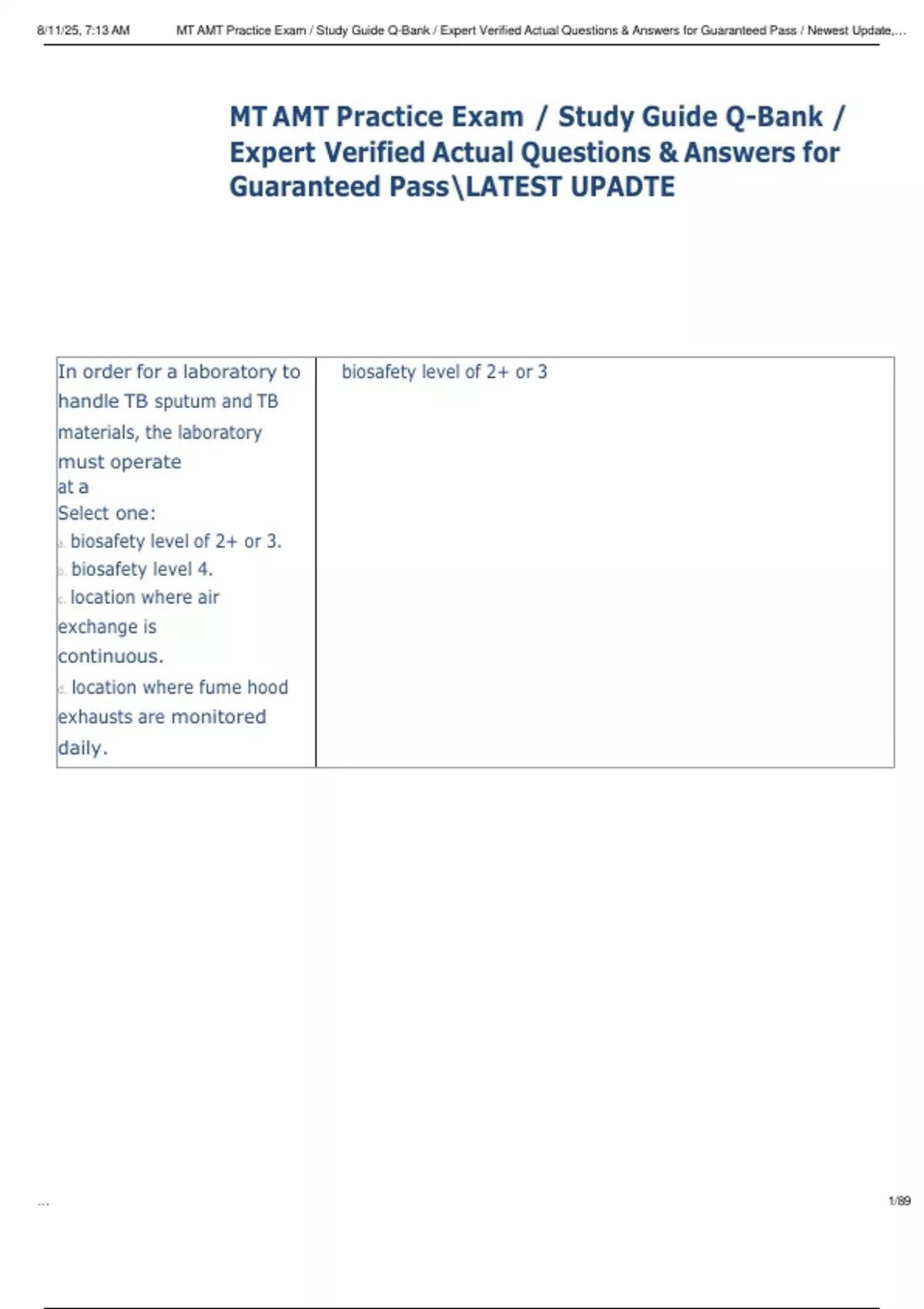 8/11/25, 7:13 AM MT AMT Practice Exam / Study Guide Q-Bank / Expert Verified Actual Questions & Answers for Guaranteed Pass / Newest Update,…