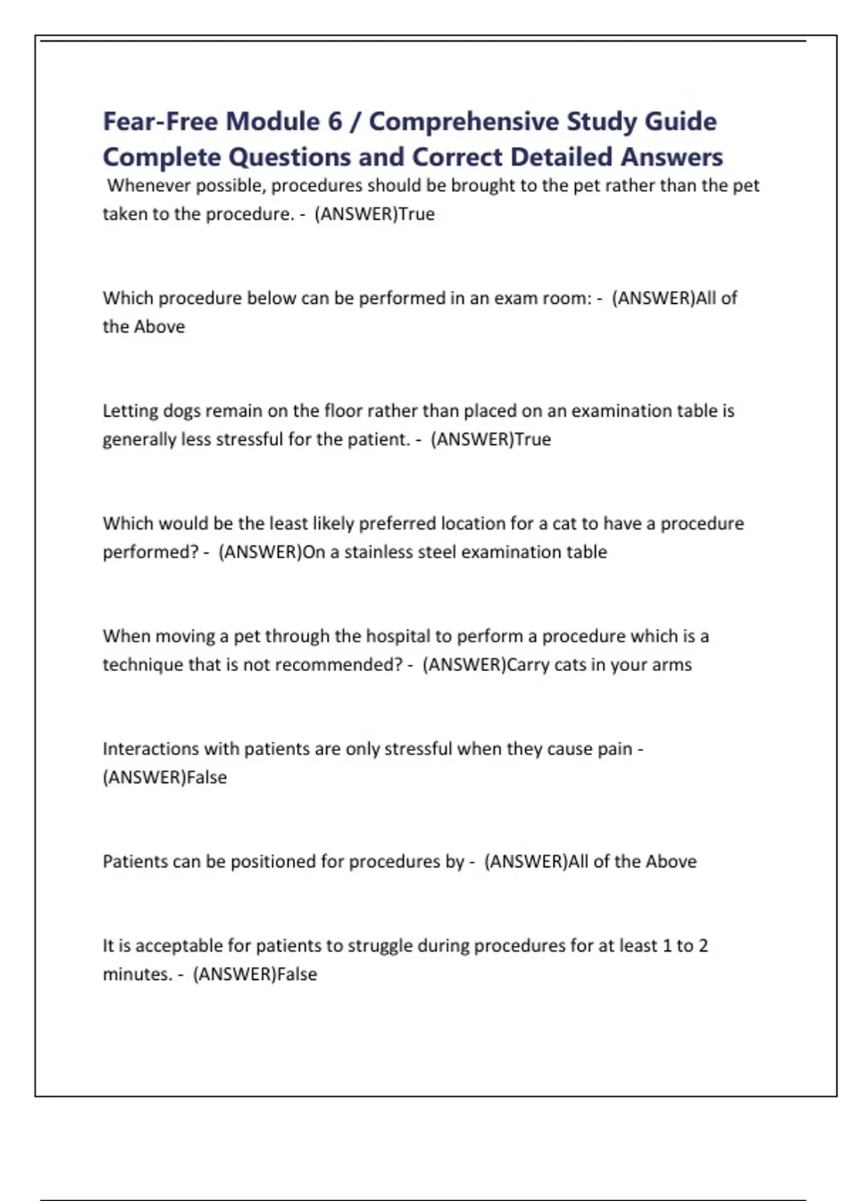 Fear-Free Module 6 / Comprehensive Study Guide Complete Questions and Correct Detailed Answers