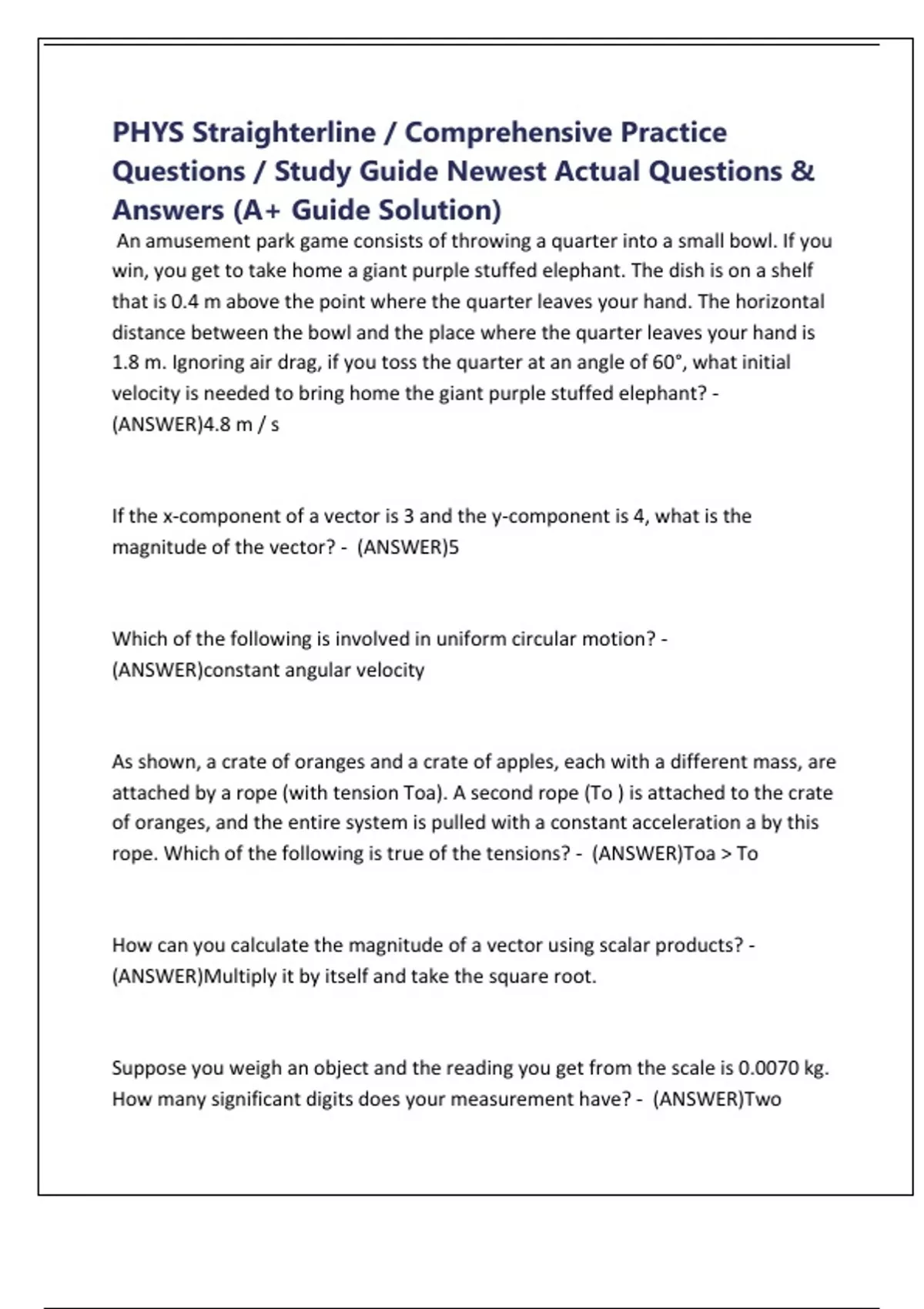 rope. Which of the following is true of the tensions? - (ANSWER)Toa > To