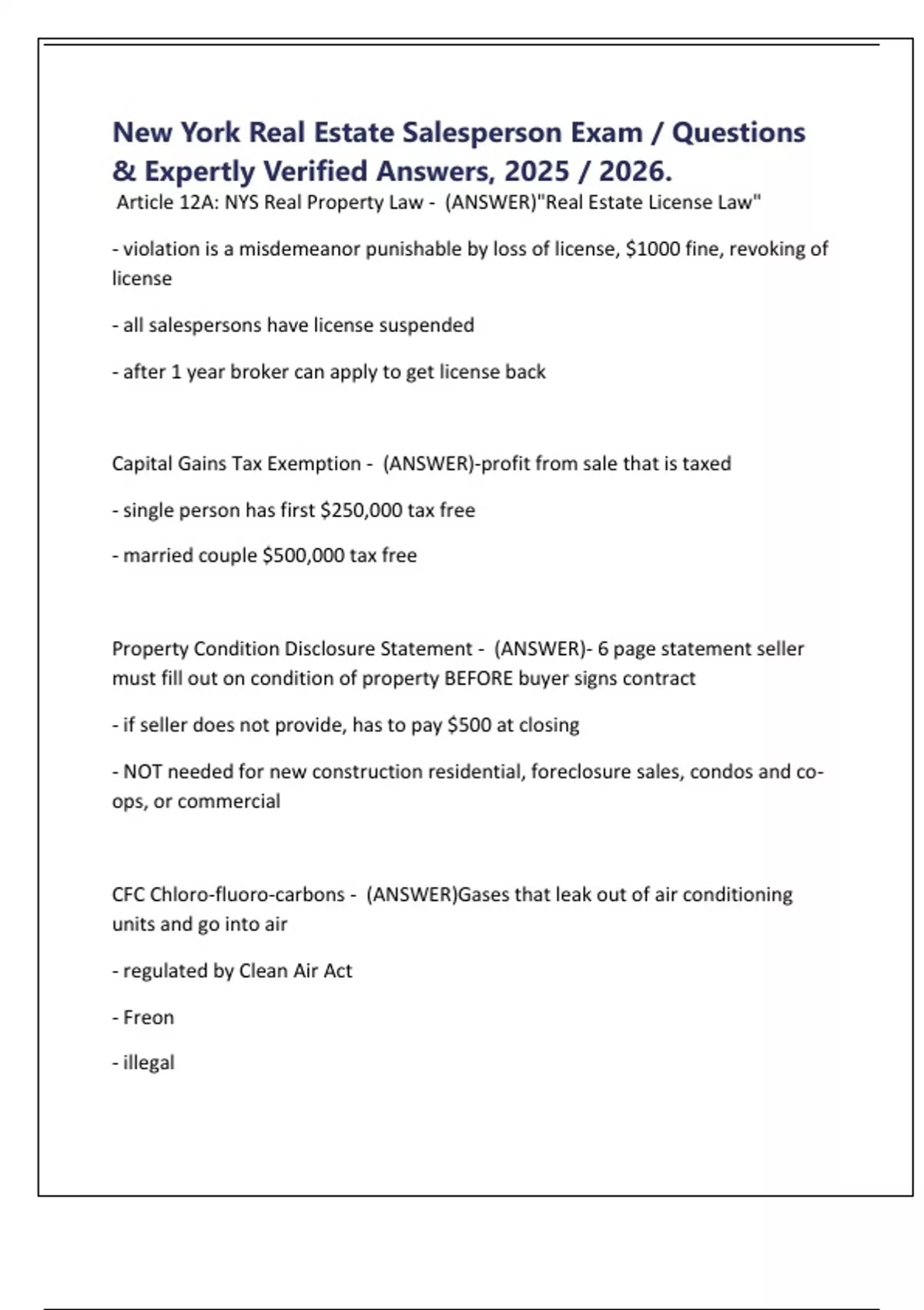 New York Real Estate Salesperson Exam / Questions & Expertly Verified Answers, 2025 / 2026.