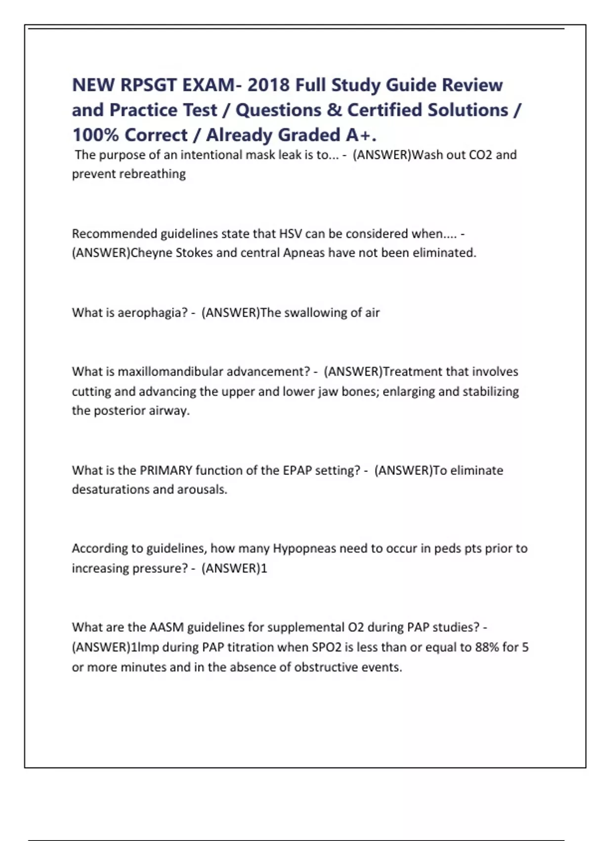 NEW RPSGT EXAM- 2018 Full Study Guide Review and Practice Test / Questions & Certified Solutions / 100% Correct / Already Graded A+.