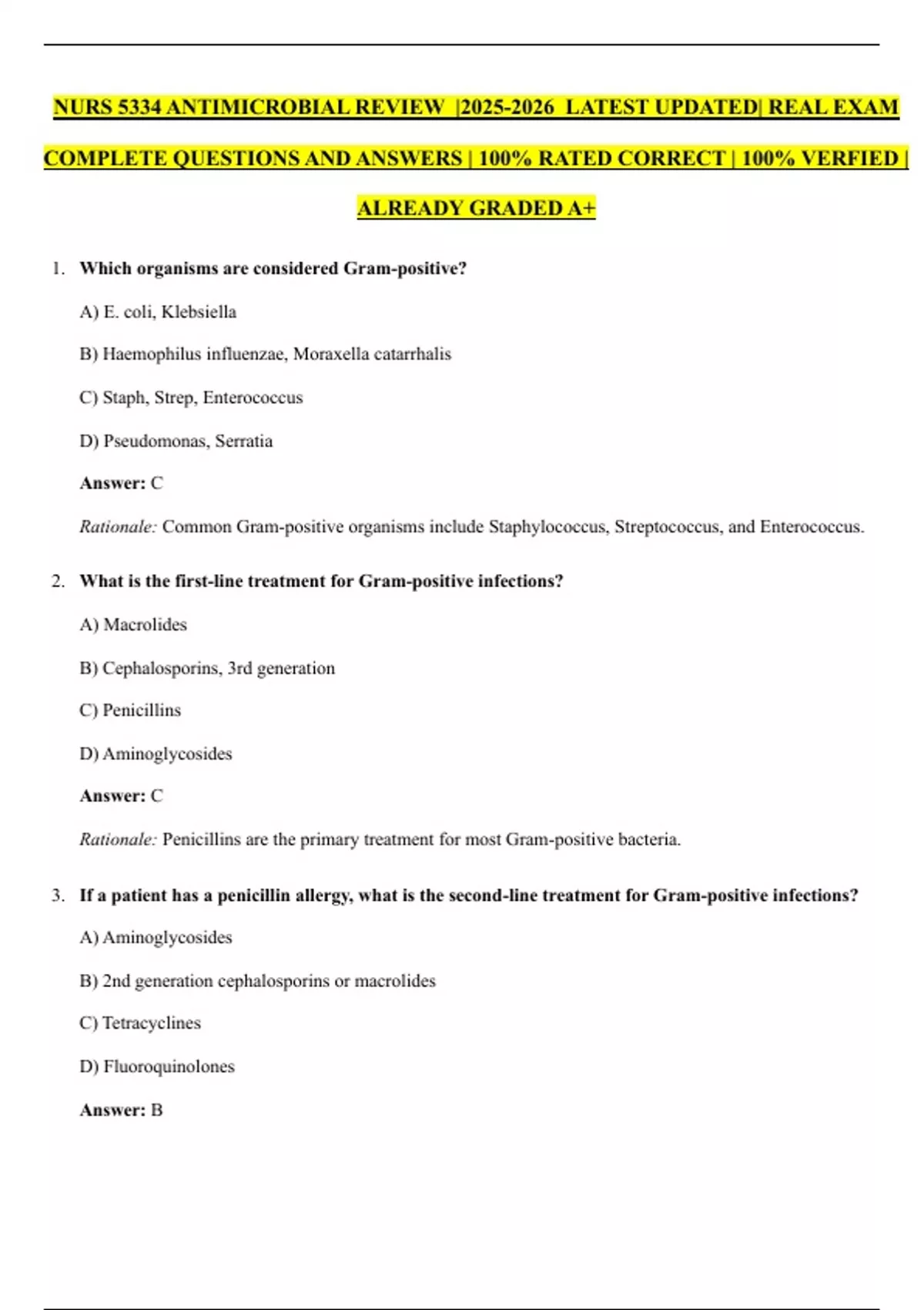 NURS 5334 ANTIMICROBIAL REVIEW | LATEST UPDATED| REAL EXAM COMPLETE QUESTIONS AND ANSWERS | 100% RATED CORRECT | 100% VERFIED | ALREADY GRADED A+