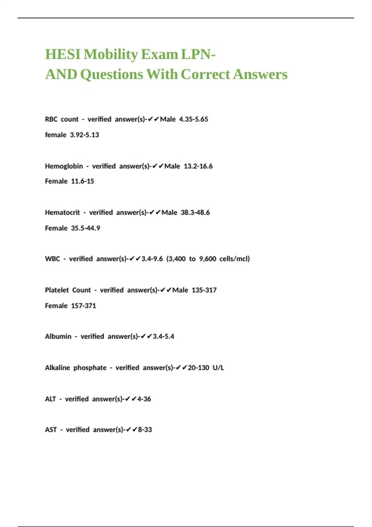 RBC //count //- //verified //answer(s)-✔✔Male //4.35-5.65 //