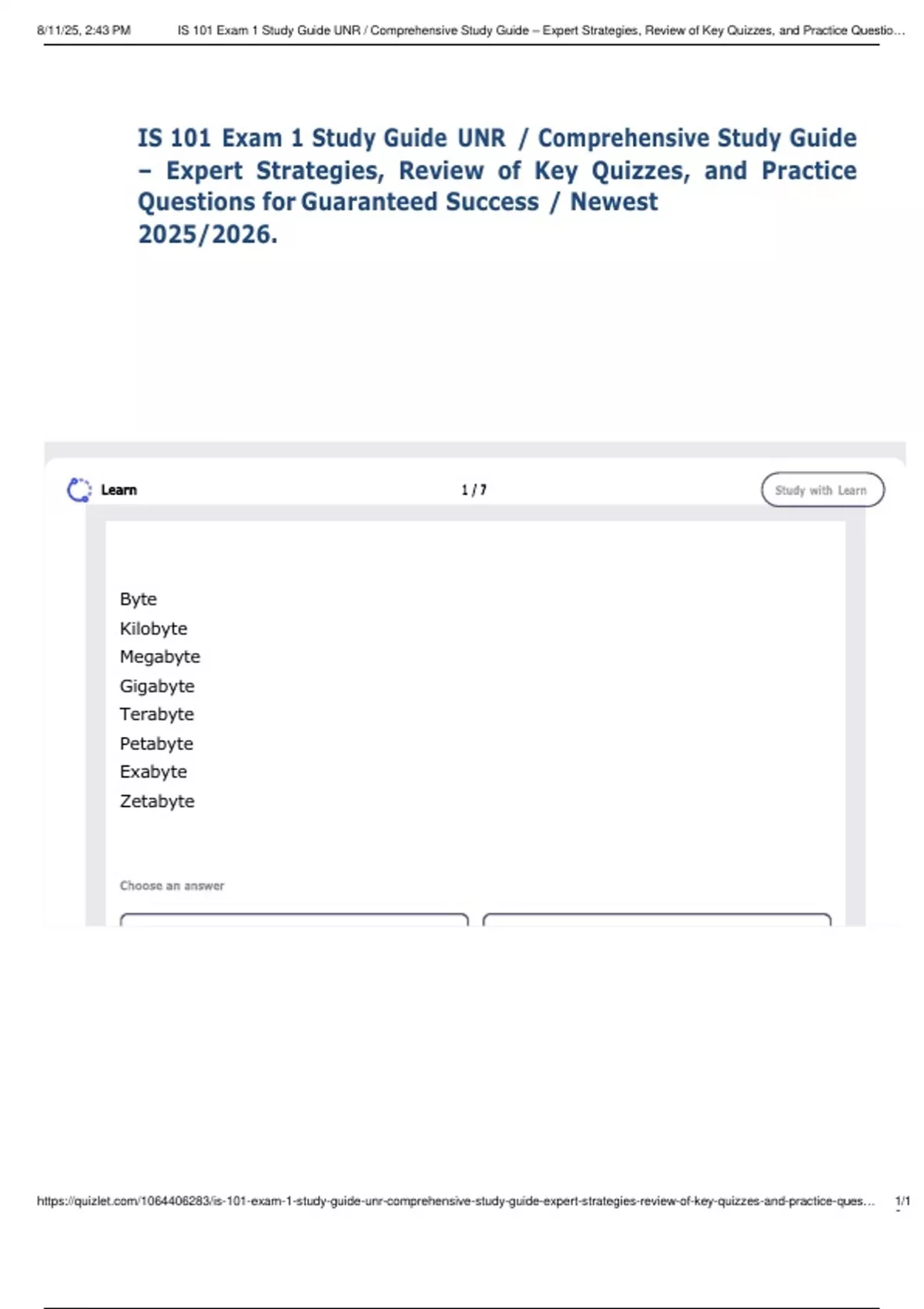 , 8/11/25, 2:43 PM IS 101 Exam 1 Study Guide UNR / Comprehensive Study Guide – Expert Strategies, Review of Key Quizzes, and Practice Questio…