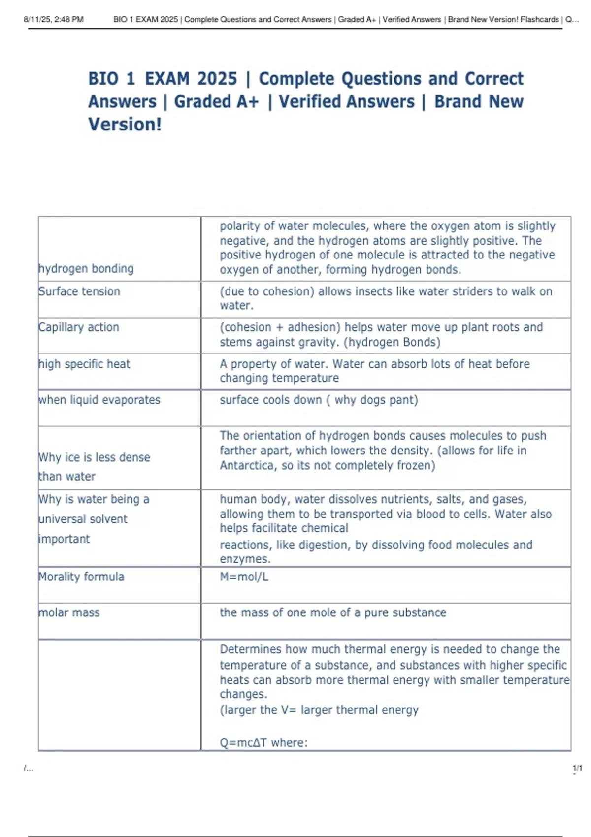 , 8/11/25, 2:48 PM BIO 1 EXAM 2025 | Complete Questions and Correct Answers | Graded A+ | Verified Answers | Brand New Version! Flashcards | Q…
