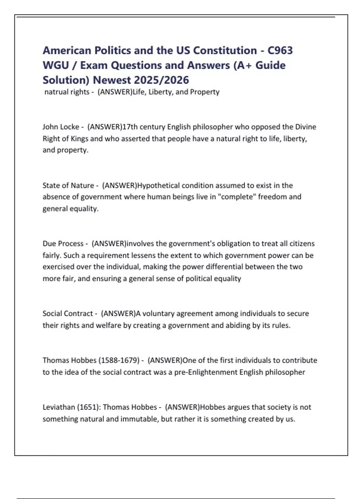 Social Contract - (ANSWER)A voluntary agreement among individuals to secure