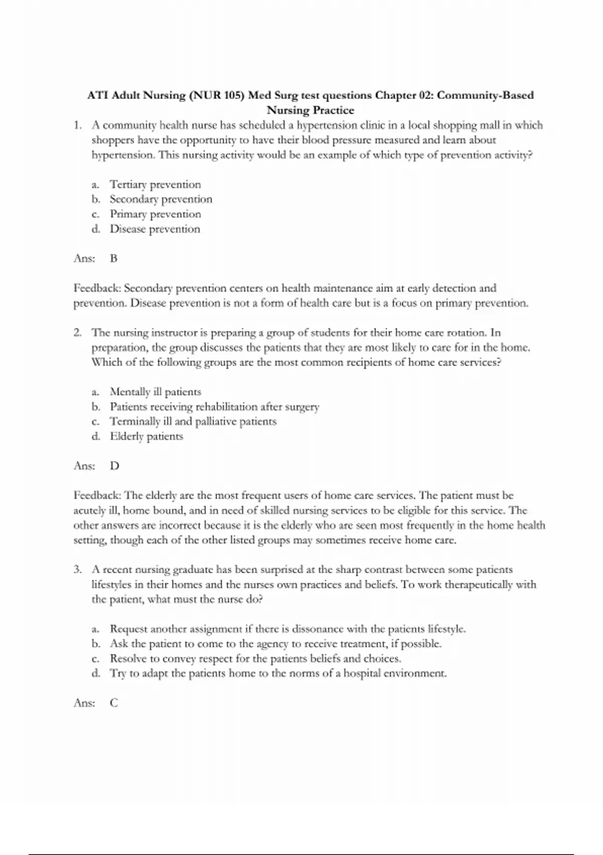 ATI Adult Nursing (NUR 105) Med Surg Test Questions (Chapter 02: Community-Based Nursing Practice)Questions and all Correct Answers with Explanations
