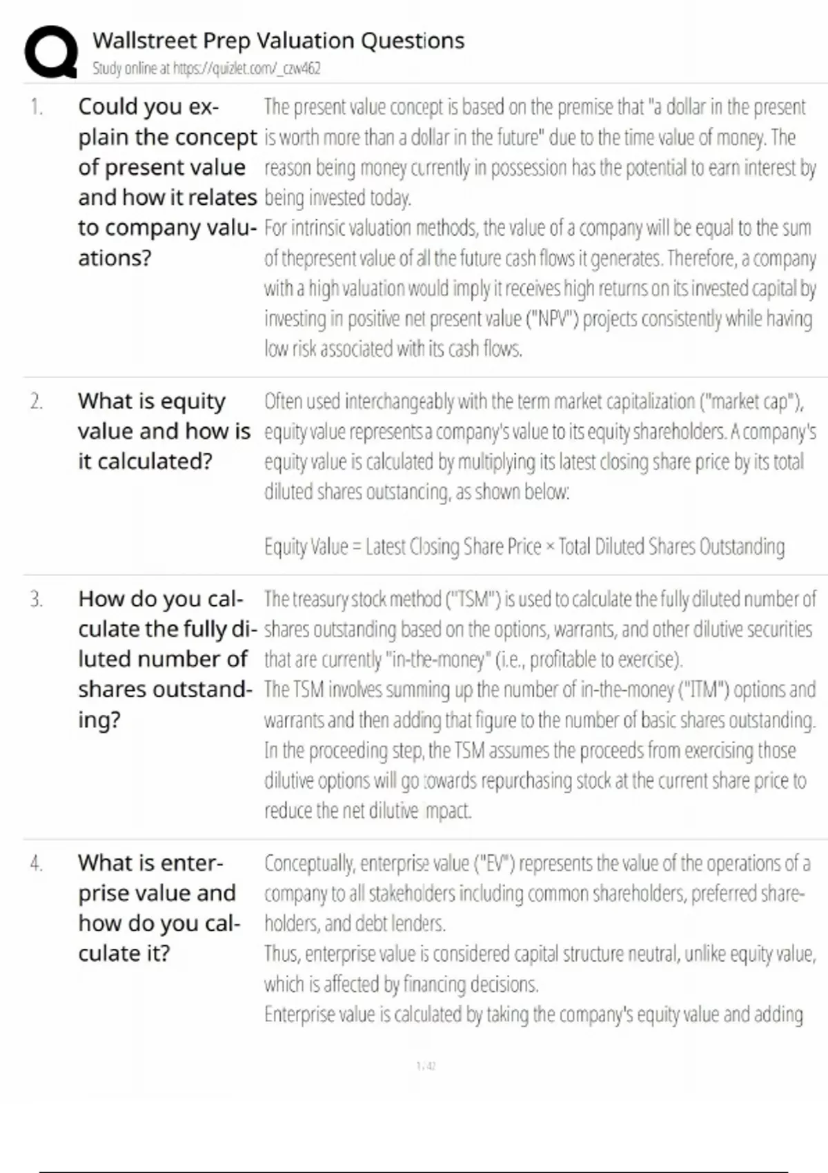 Master Wall Street Prep valuation questions with this 2025 updated guide. Covers equity vs. enterprise value, LTM vs. forward multiples, sector-specific comps, and key valuation methodologies to help you excel in exams, quizzes, and assignments for investment banking and finance.