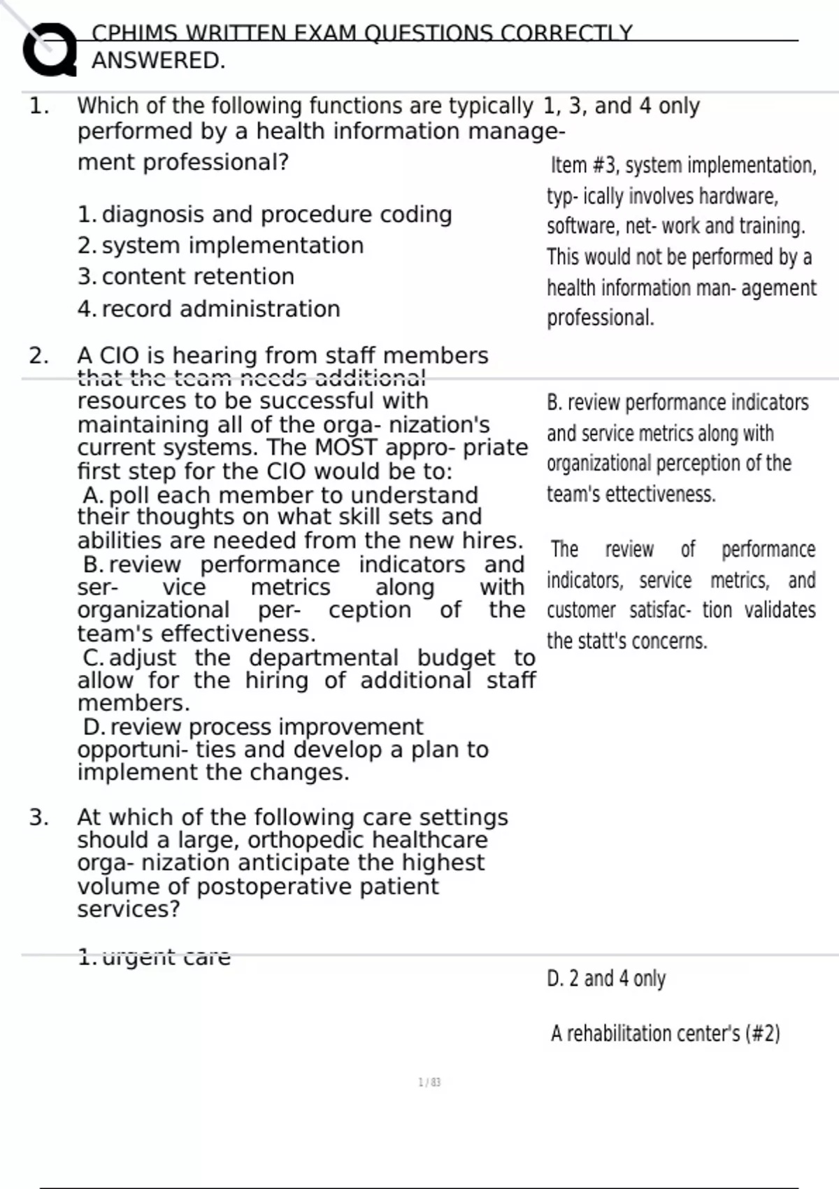, CPHIMS WRITTEN EXAM QUESTIONS CORRECTLY