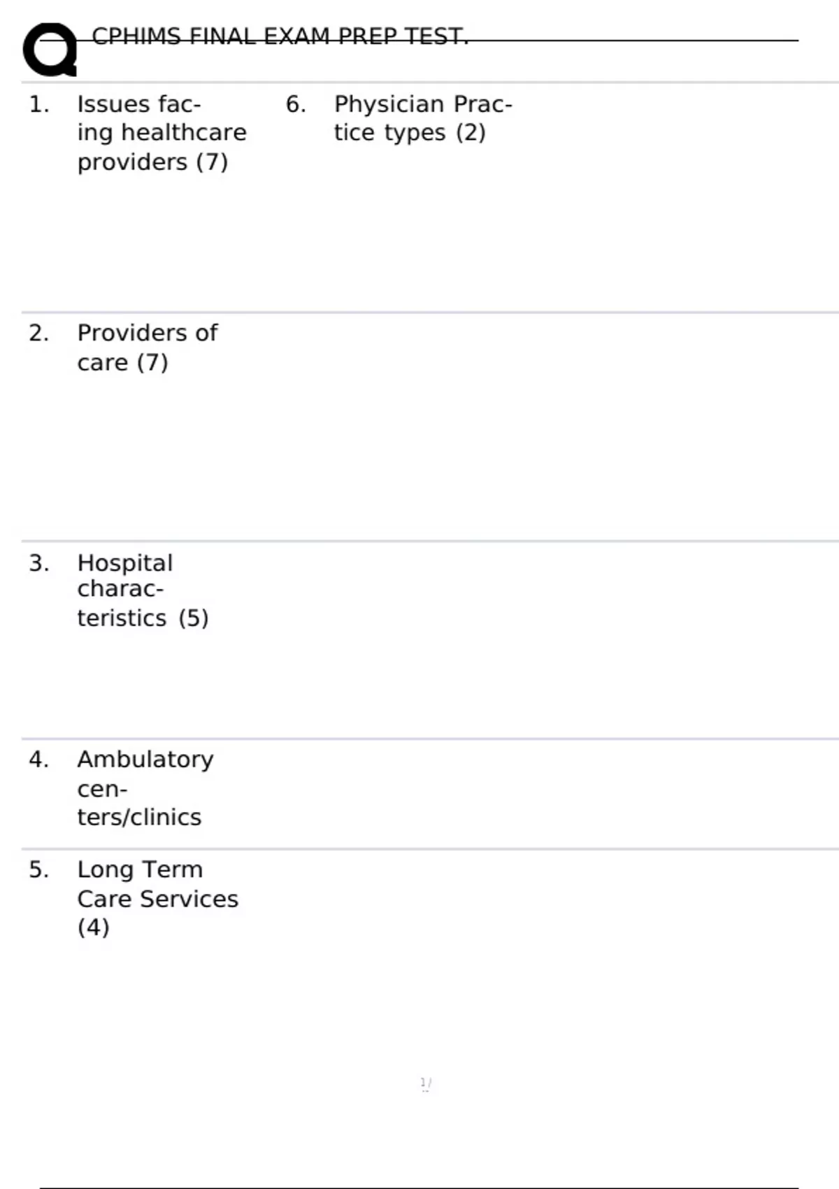 1. Issues fac- 6. Physician Prac-