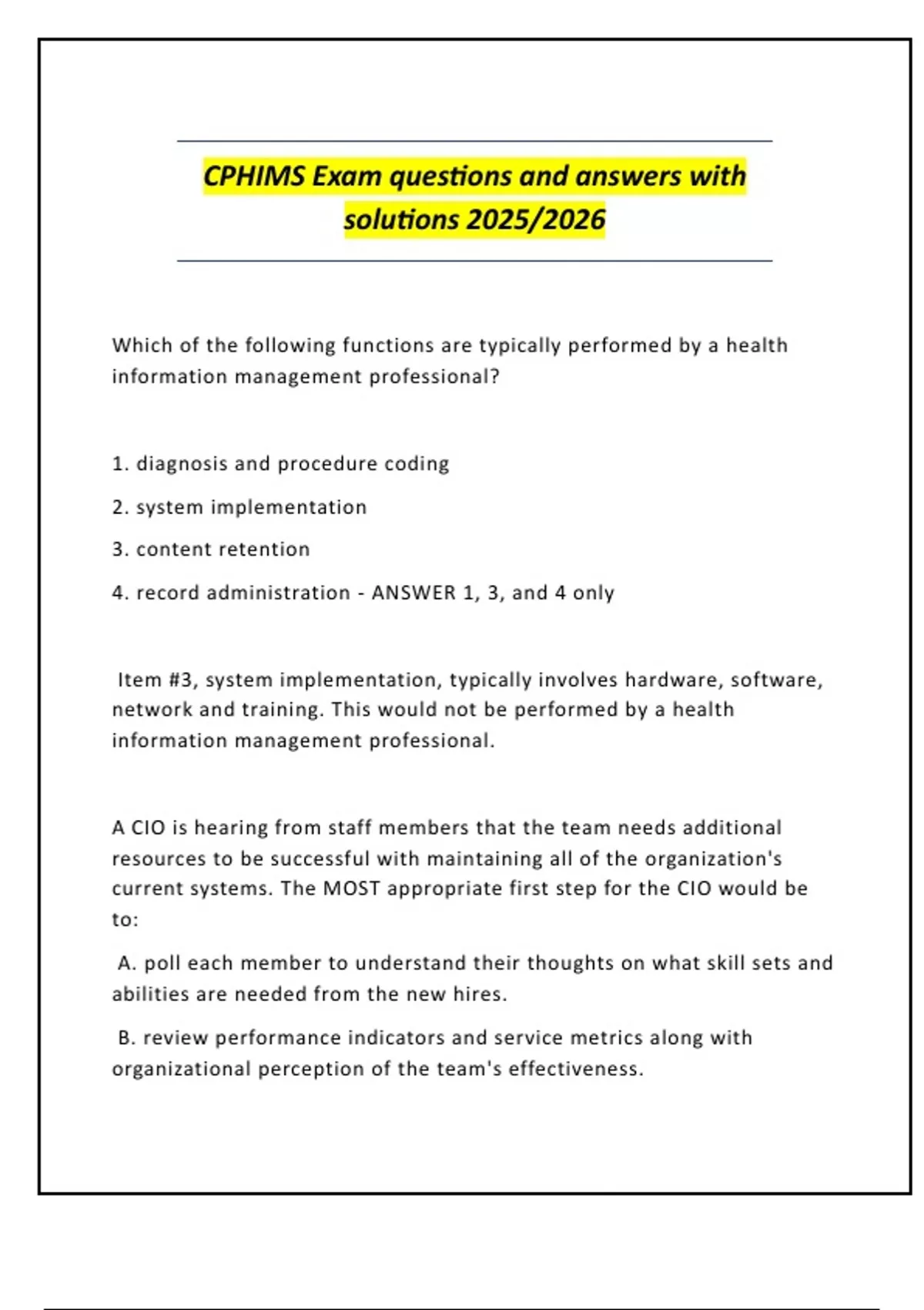 CPHIMS Exam questions and answers with solutions 2025/2026