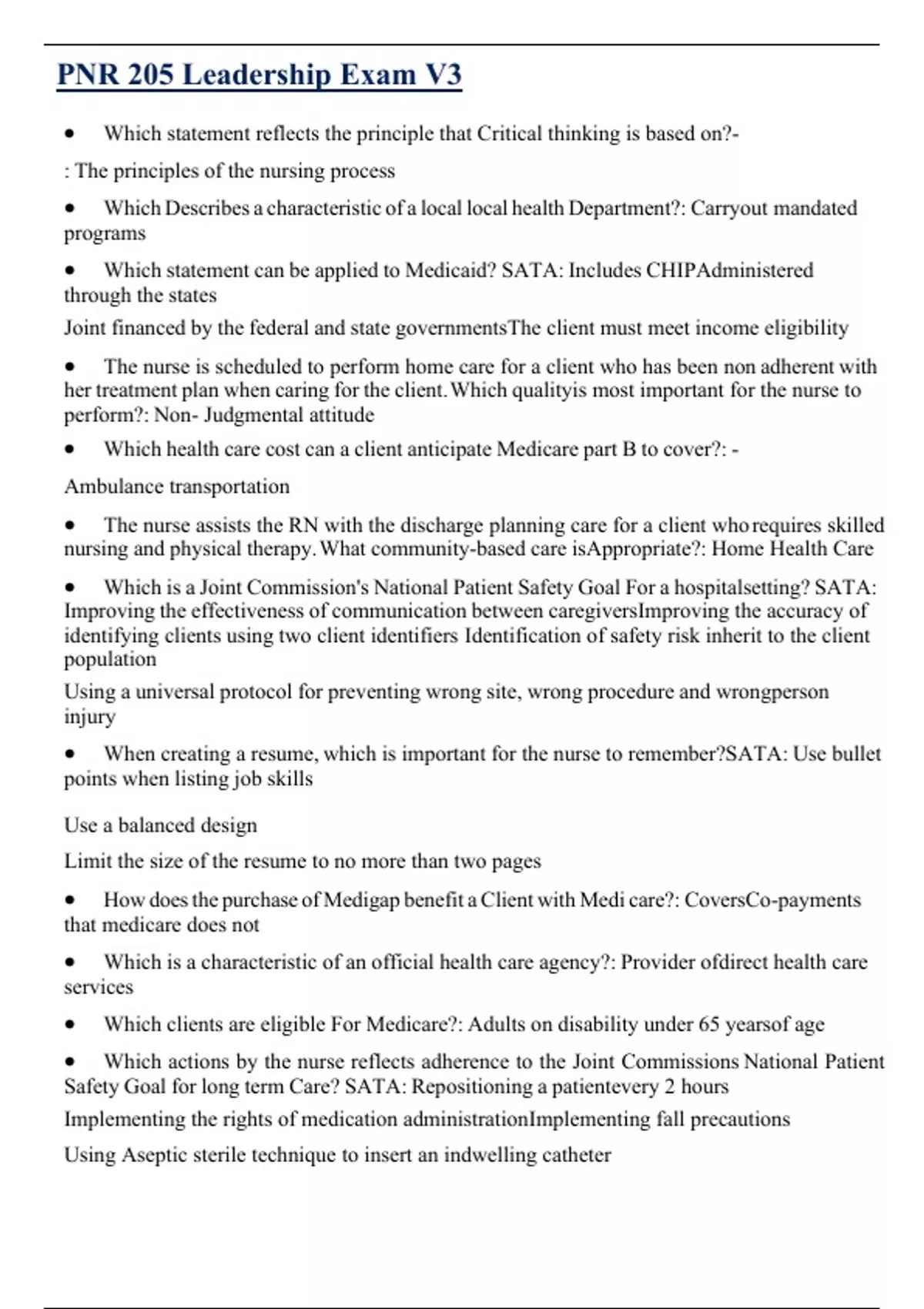 PNR 205 Leadership Exam V3 (LATEST ) | QUESTIONS & VERIFIED ANSWERS WITH FULL RATIONALES | A+ GRADE GUARANTEED