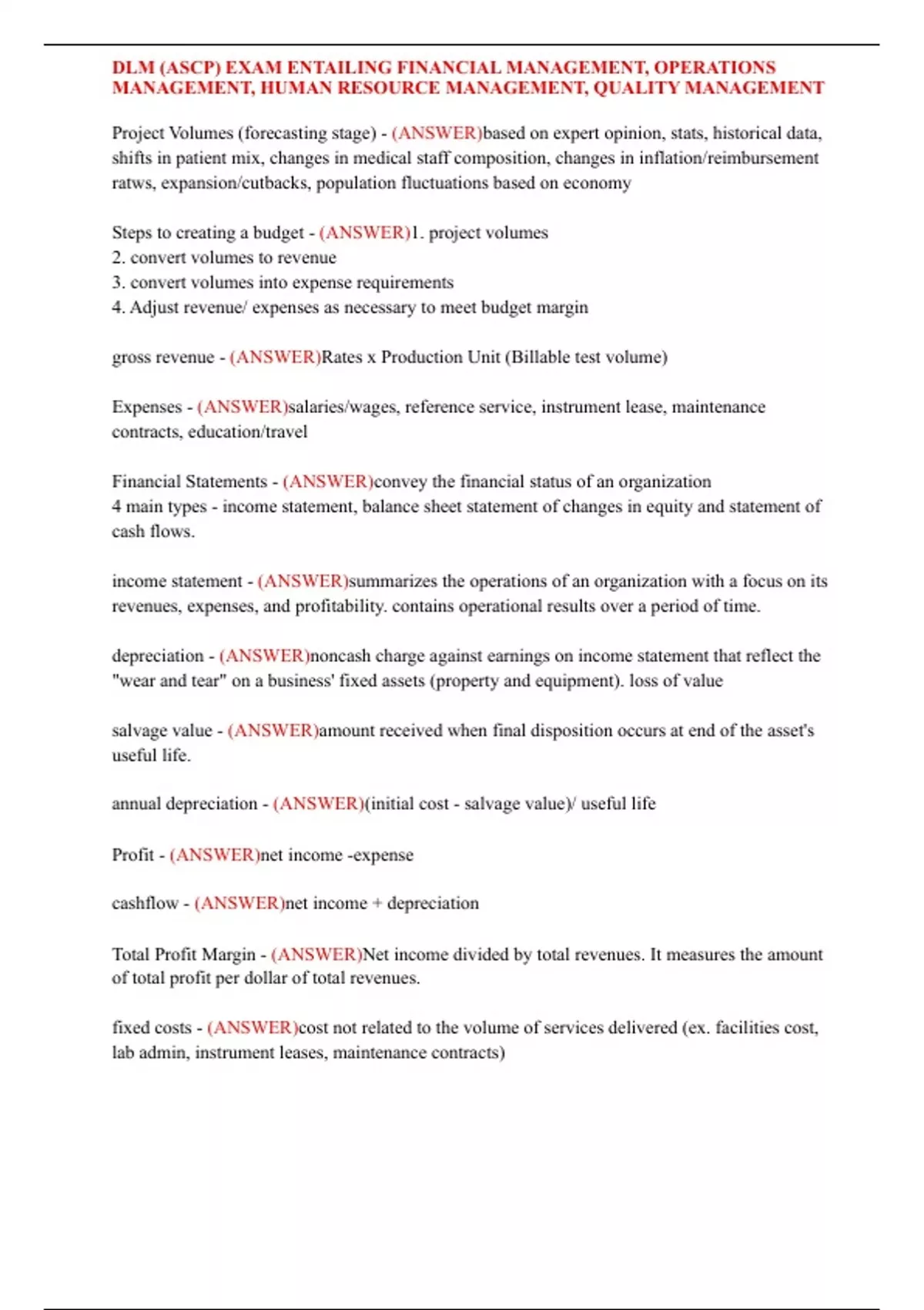 DLM (ASCP) EXAM ENTAILING FINANCIAL MANAGEMENT, OPERATIONS