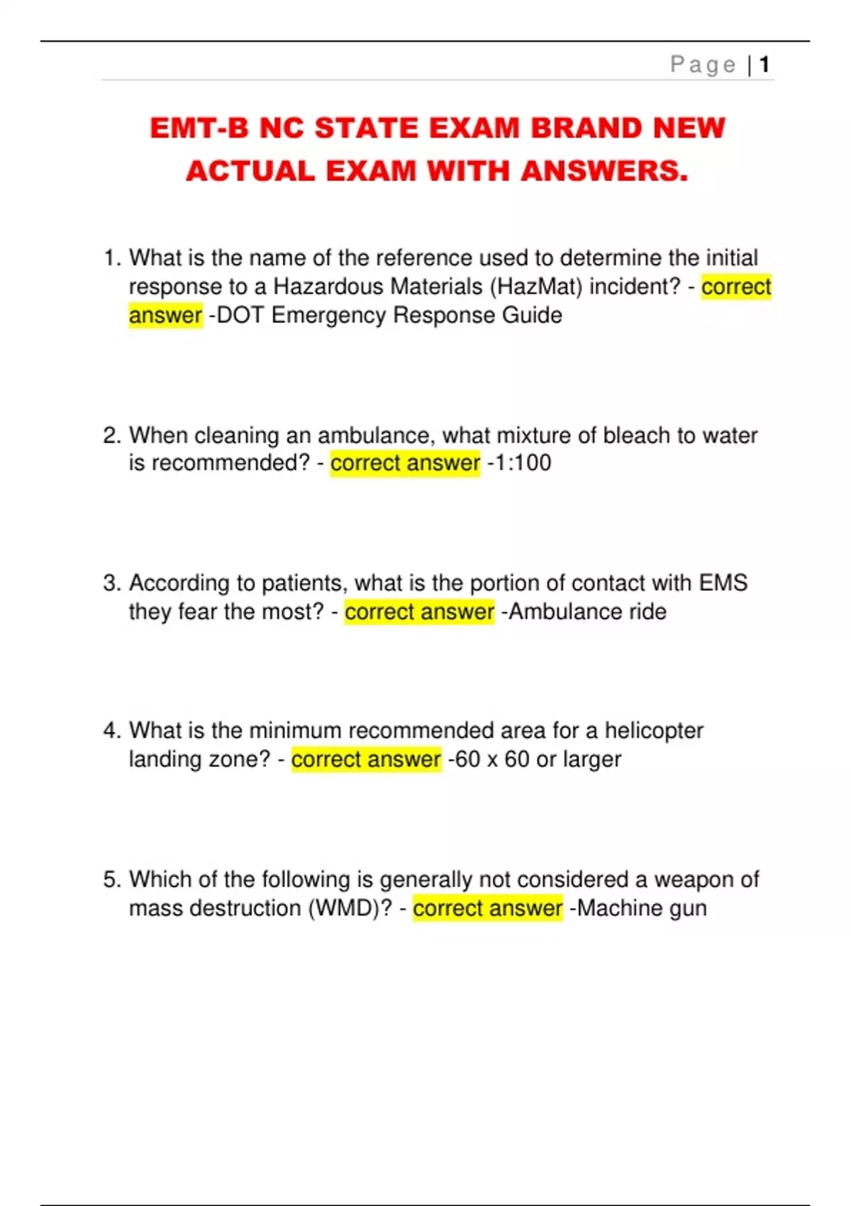 EMT-B NC STATE EXAM BRAND NEW