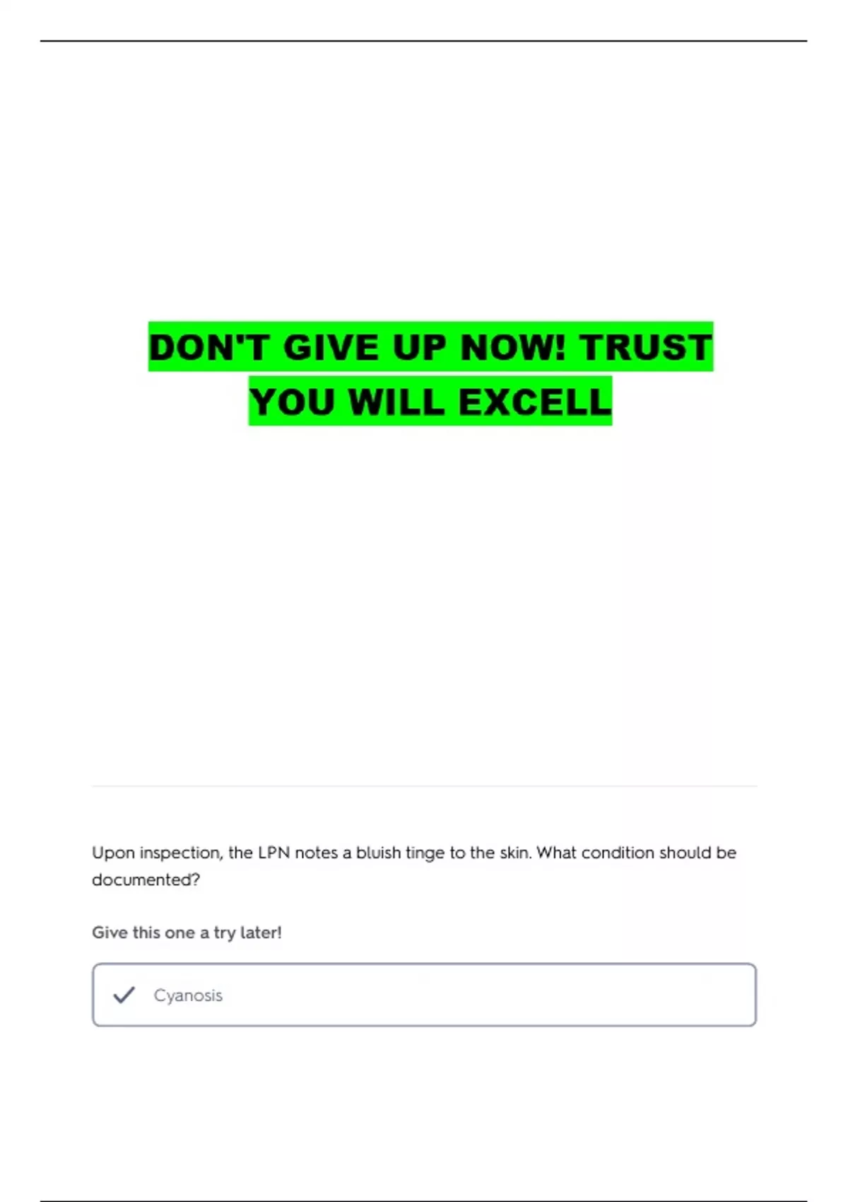 Upon inspection, the LPN notes a bluish tinge to the skin. What condition should be