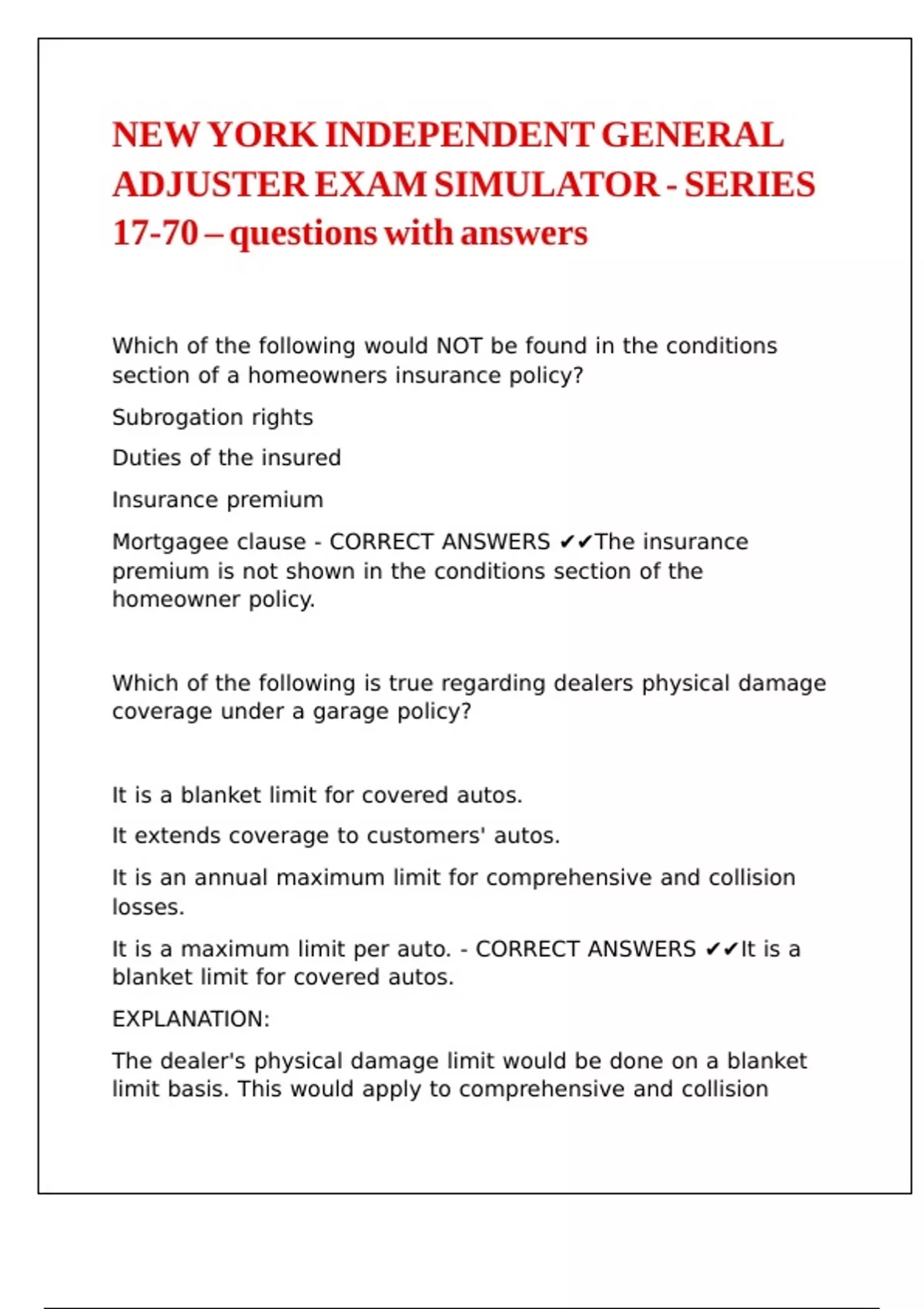 ADJUSTER EXAM SIMULATOR - SERIES |\ |\ |\ |\ |\