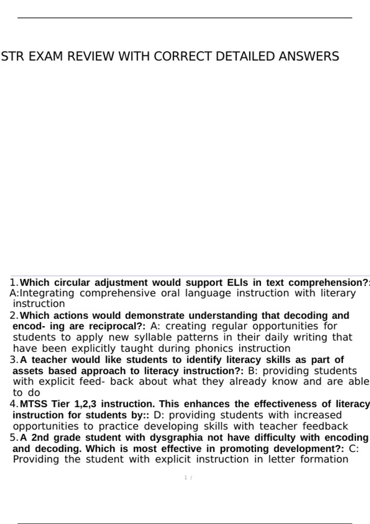 STR EXAM REVIEW WITH CORRECT DETAILED ANSWERS