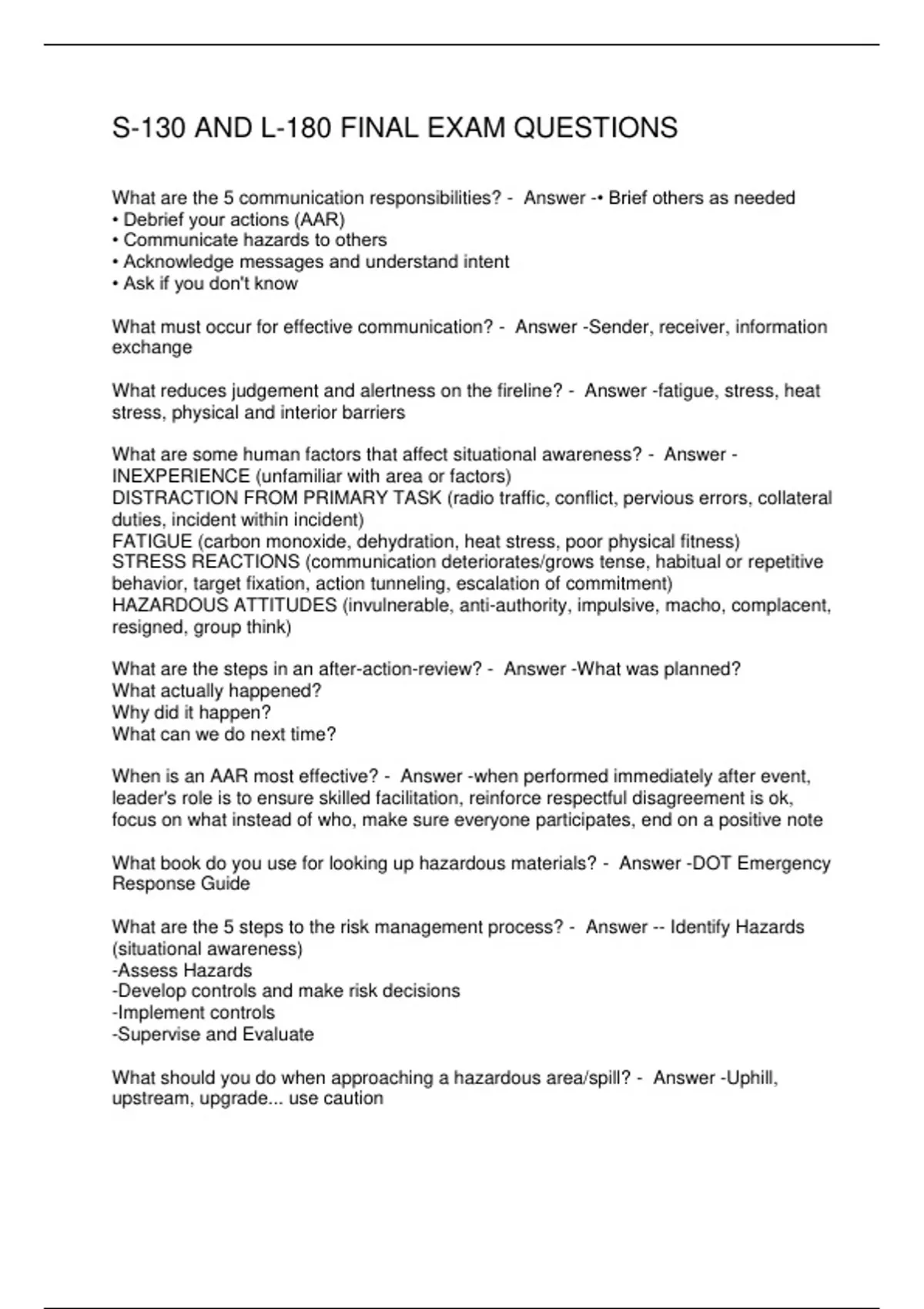 S-130 AND L-180 FINAL EXAM QUESTIONS