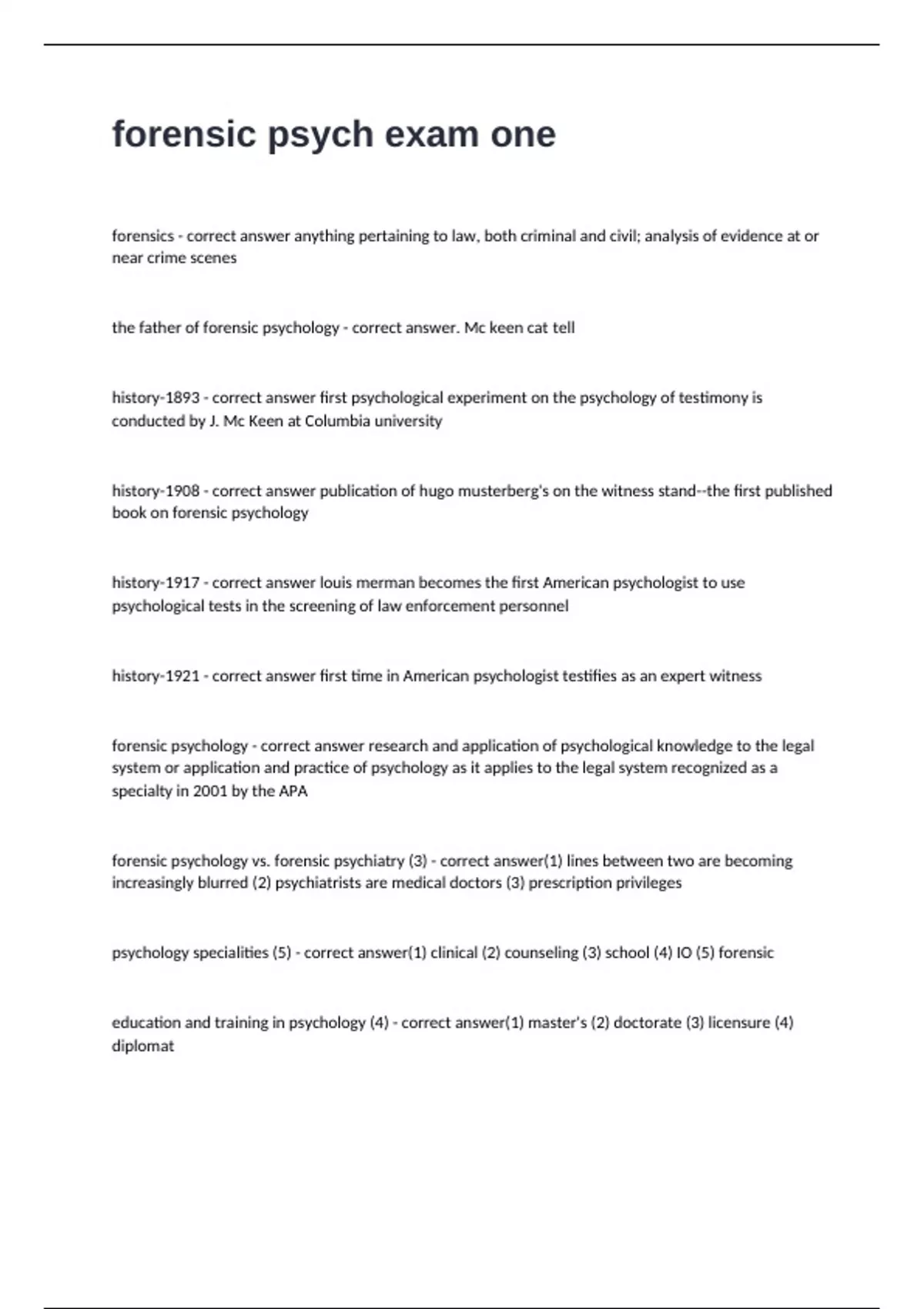 the father of forensic psychology - correct answer. Mc keen cat tell