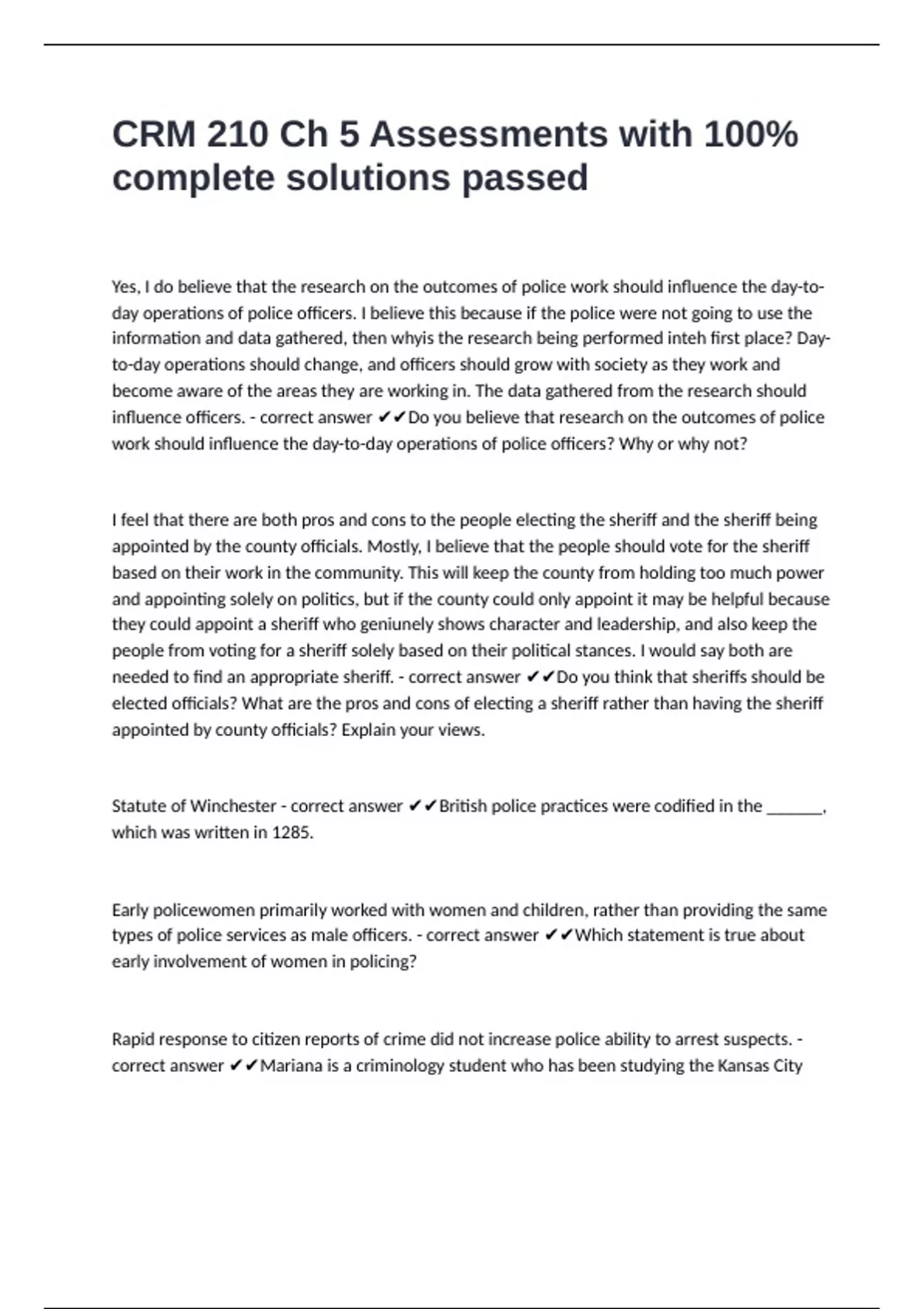 correct answer ✔✔Mariana is a criminology student who has been studying the Kansas City