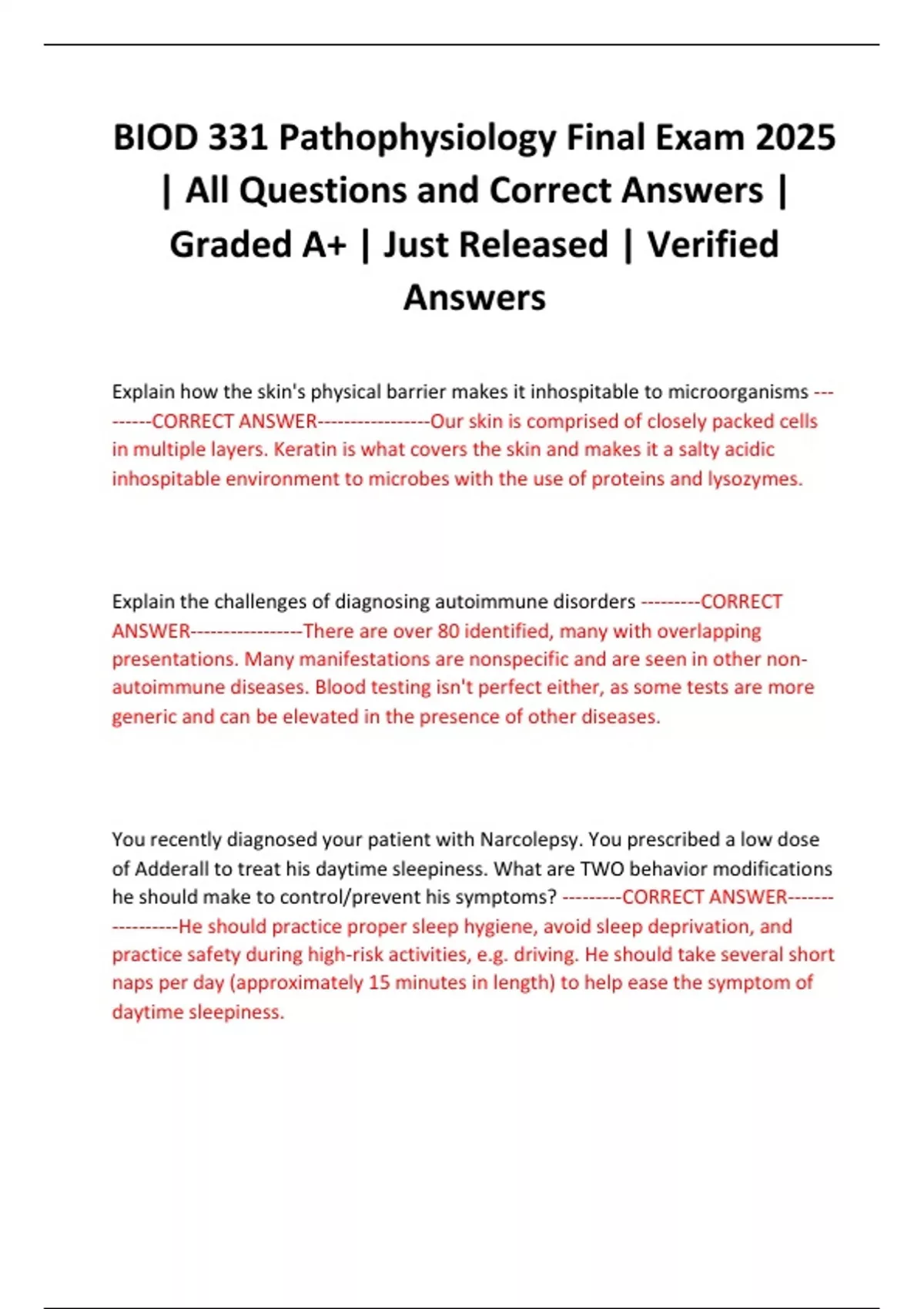 | All Questions and Correct Answers |