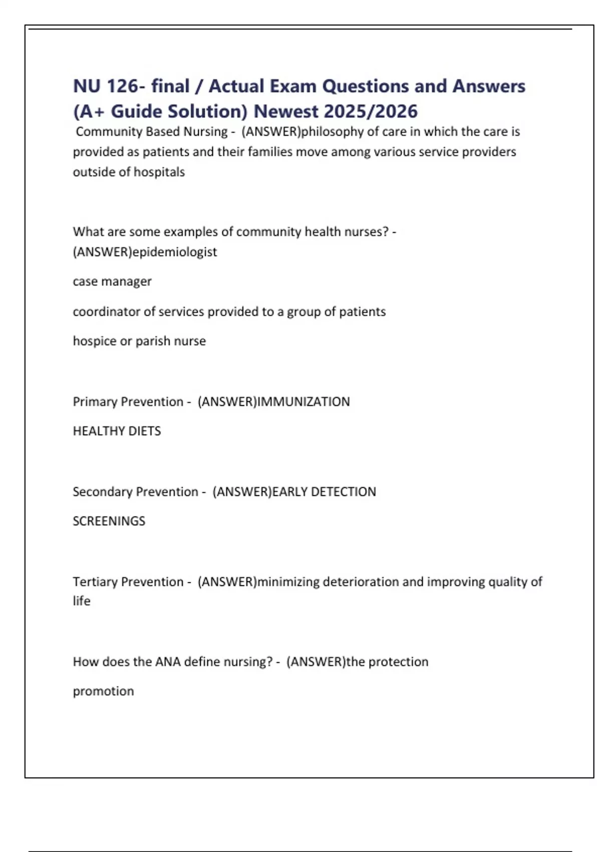 NU 126- final / Actual Exam Questions and Answers