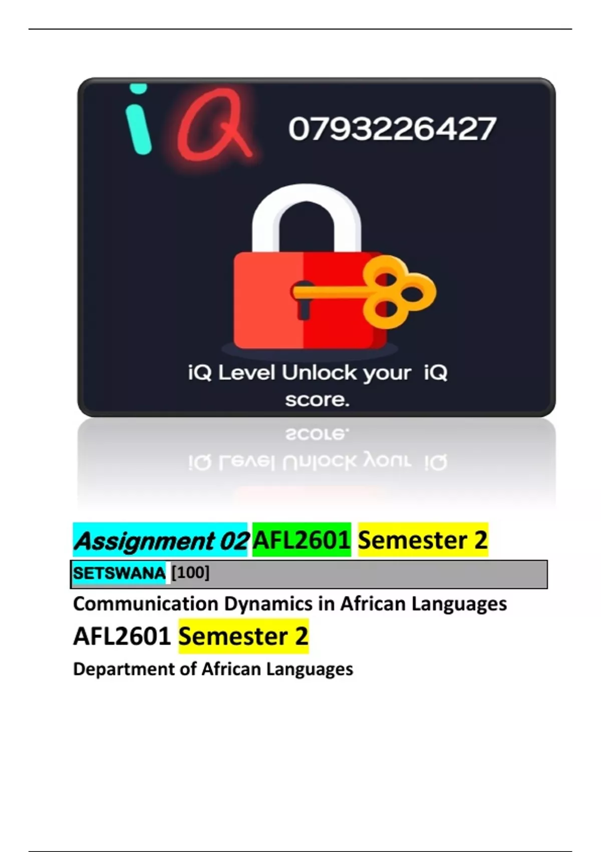 AFL2601 Semester 2