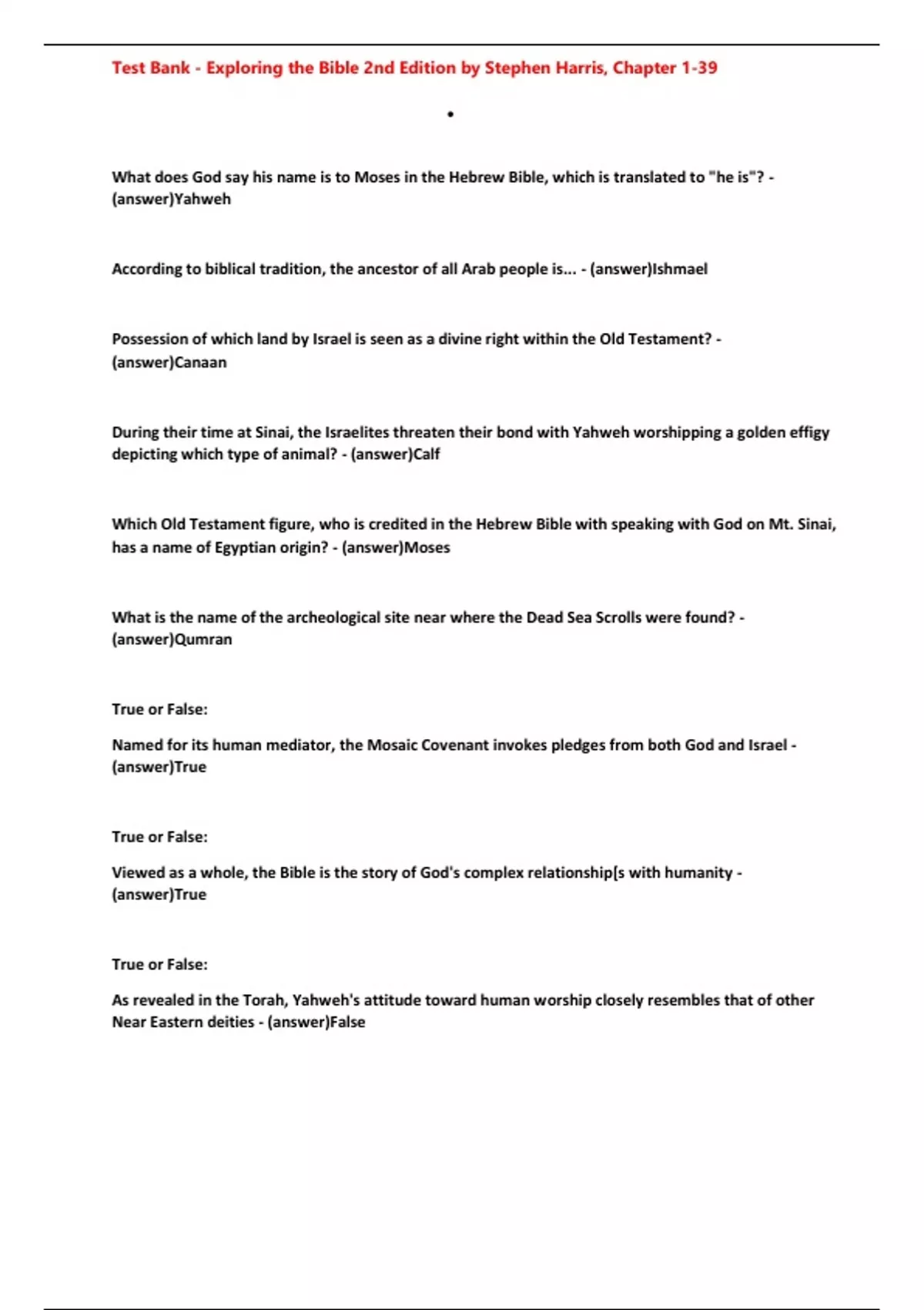 , Test Bank - Exploring the Bible 2nd Edition by Stephen Harris, Chapter 1-39