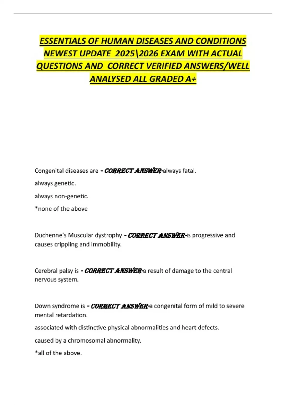 Congenital diseases are - CORRECT ANSWER-always fatal.
