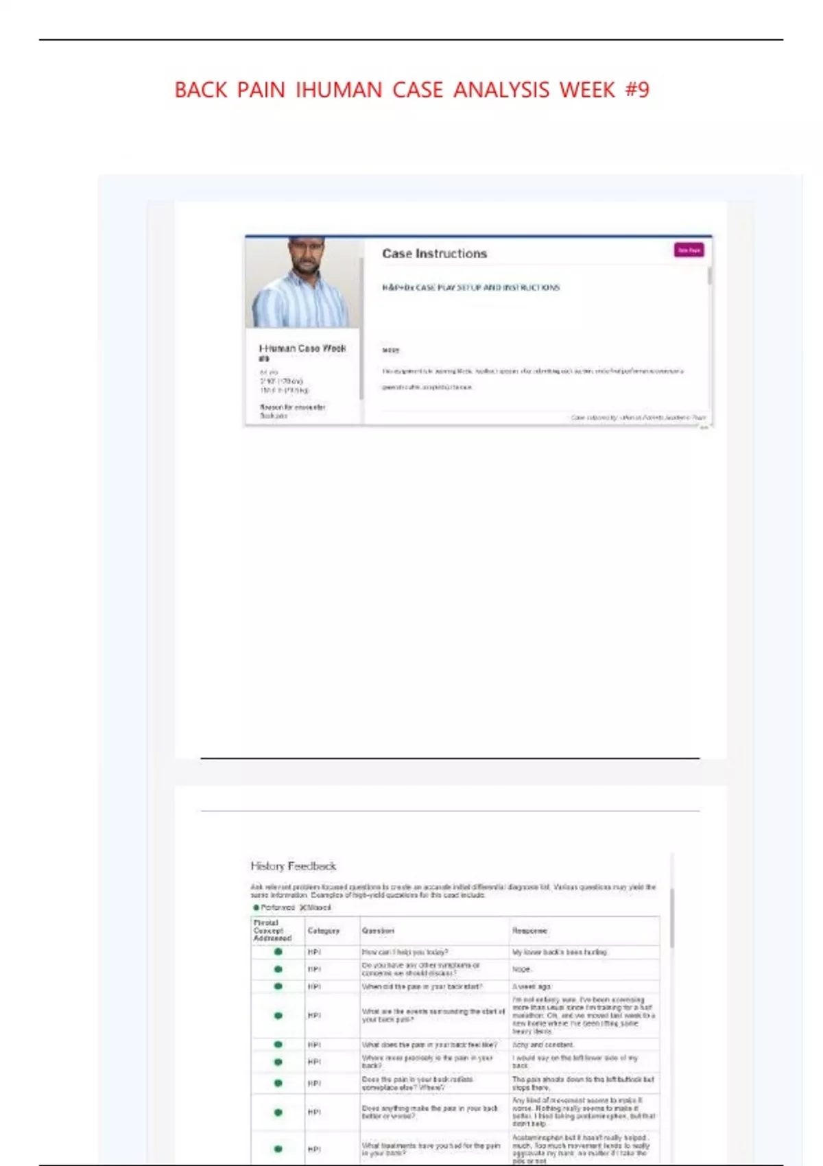 BACK PAIN IHUMAN CASE ANALYSIS WEEK #9 QUESTIONS WITH CORRECT ANSWERS VE BACK PAIN IHUMAN CASE ANALYSIS WEEK #9 QUESTIONS WITH CORRECT ANSWERS VERIFIRED A+RIFIRED A+