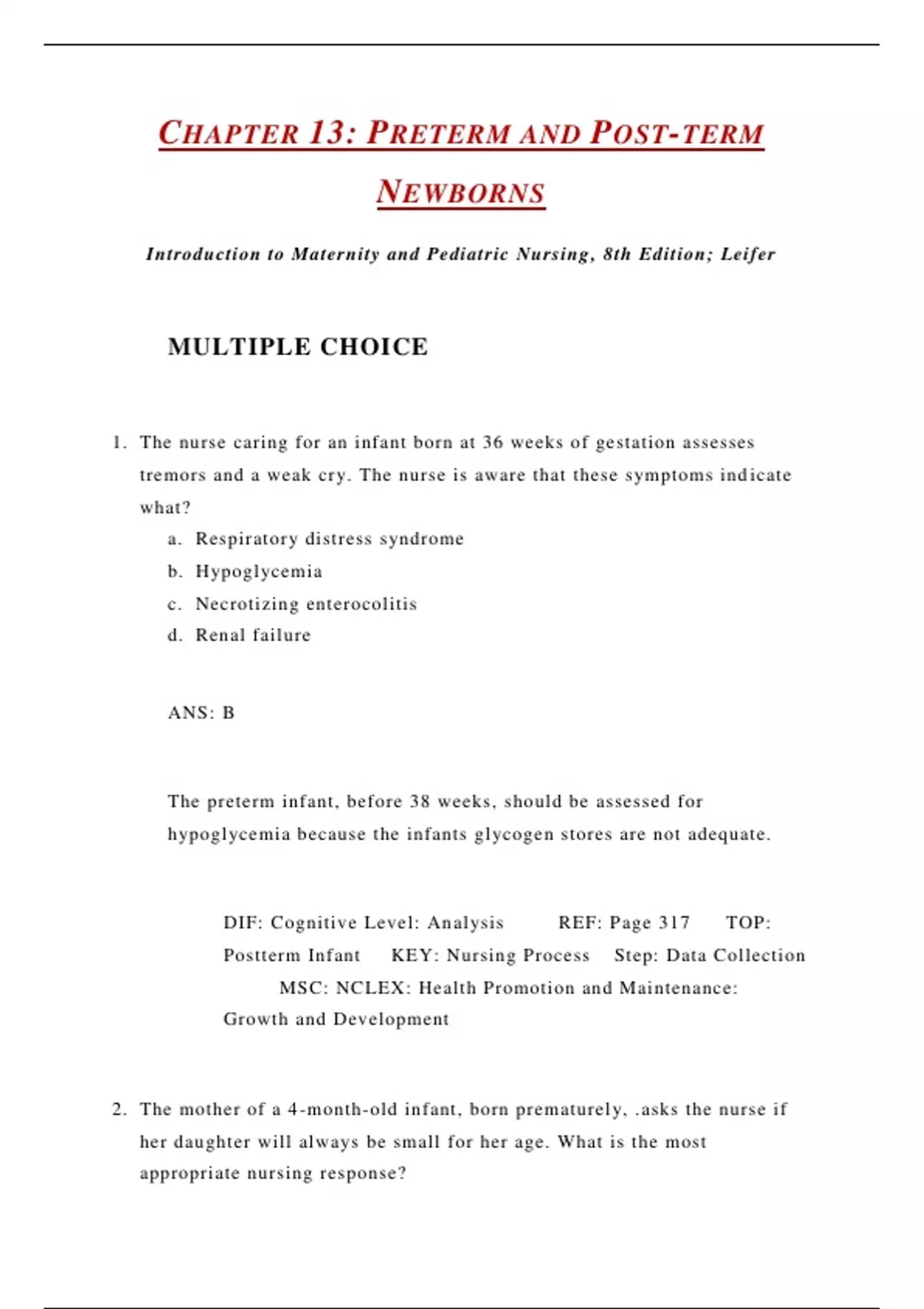 1. The nurse caring for an infant born at 36 weeks of gestation assesses