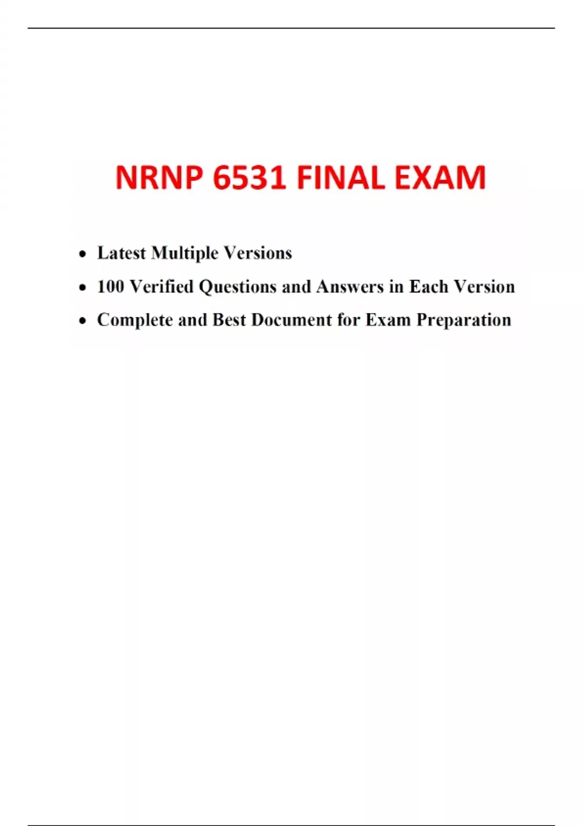 NRNP 6531 Final Exam (7 Versions, Latest, 700 Q & A) & NRNP 6531 Midterm Exam (3 Versions, Latest, 300 Q & A): Walden University | 100% Verified Q & A |