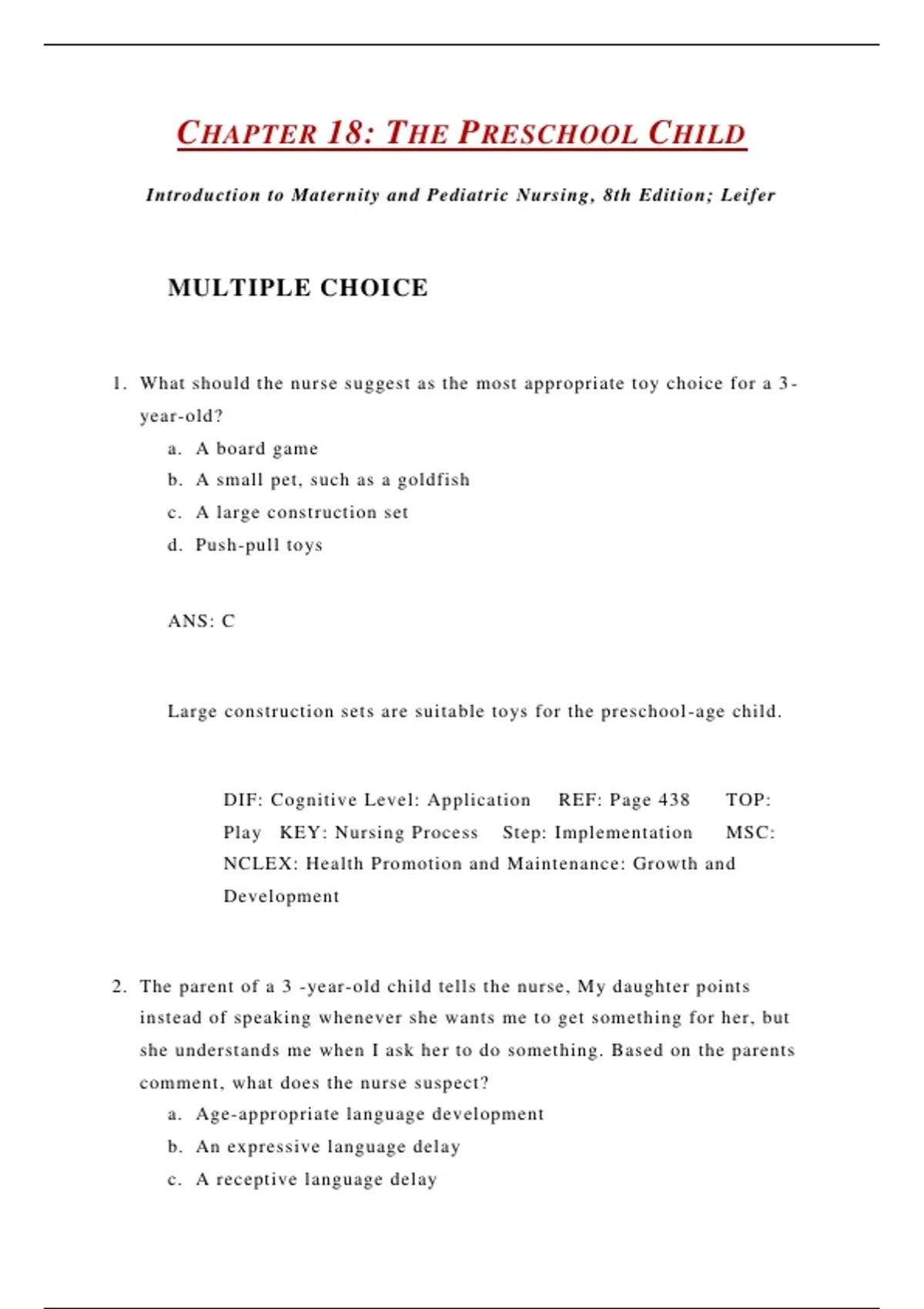 2. The parent of a 3 -year-old child tells th e nurse, My daughter points
