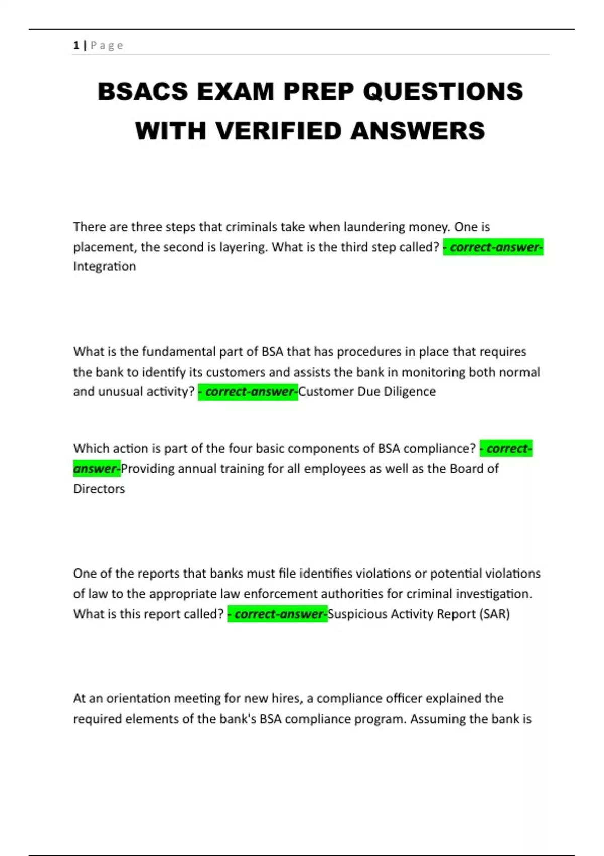 Which action is part of the four basic components of BSA compliance? - correct-