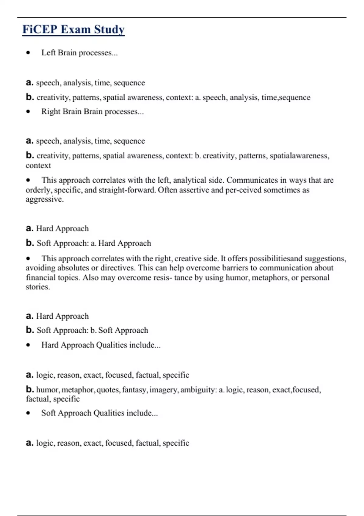 • This approach correlates with the left, analytical side. Communicates in ways that are
