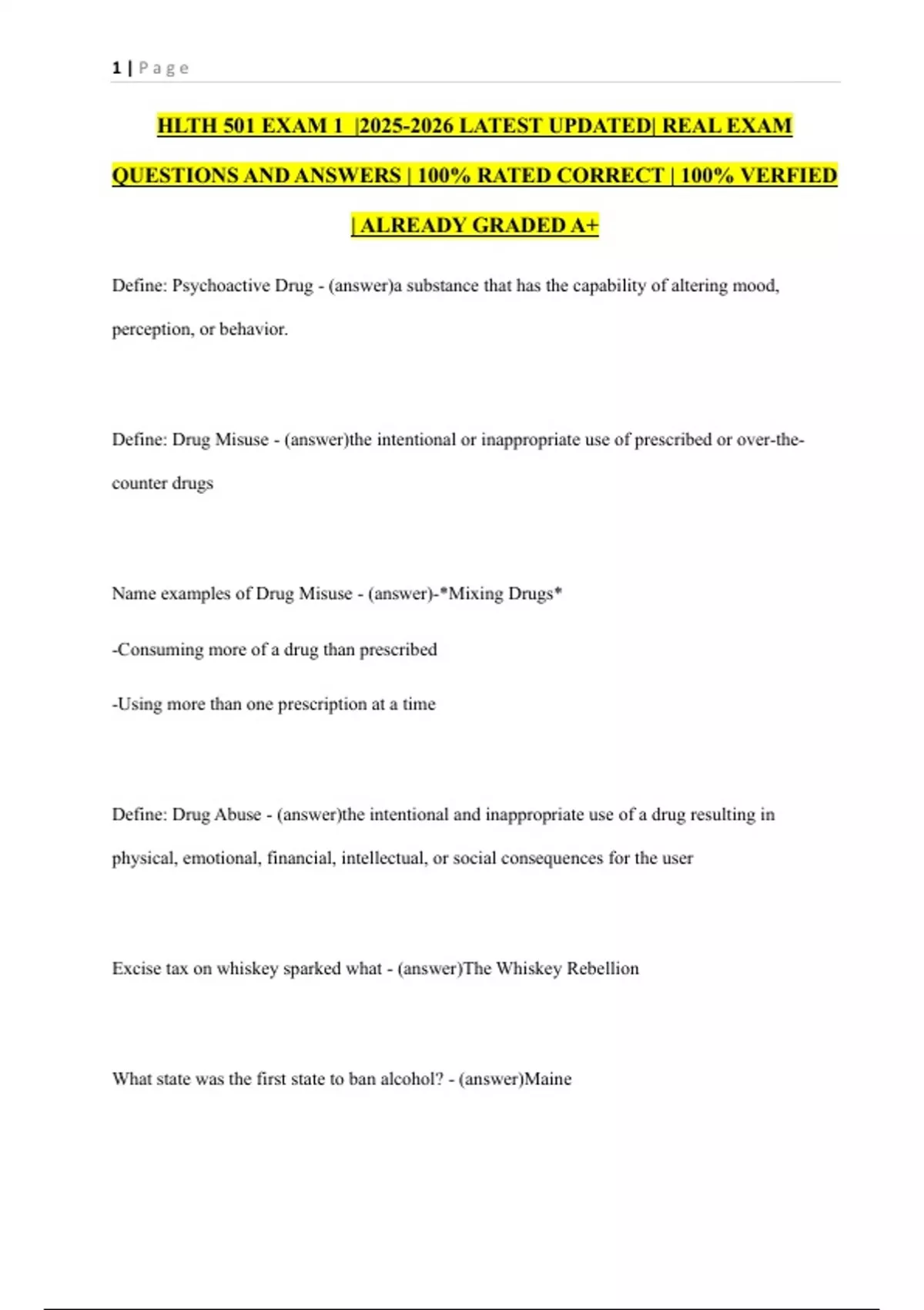 HLTH 501 EXAM 1 |2025-2026 LATEST UPDATED| REAL EXAM